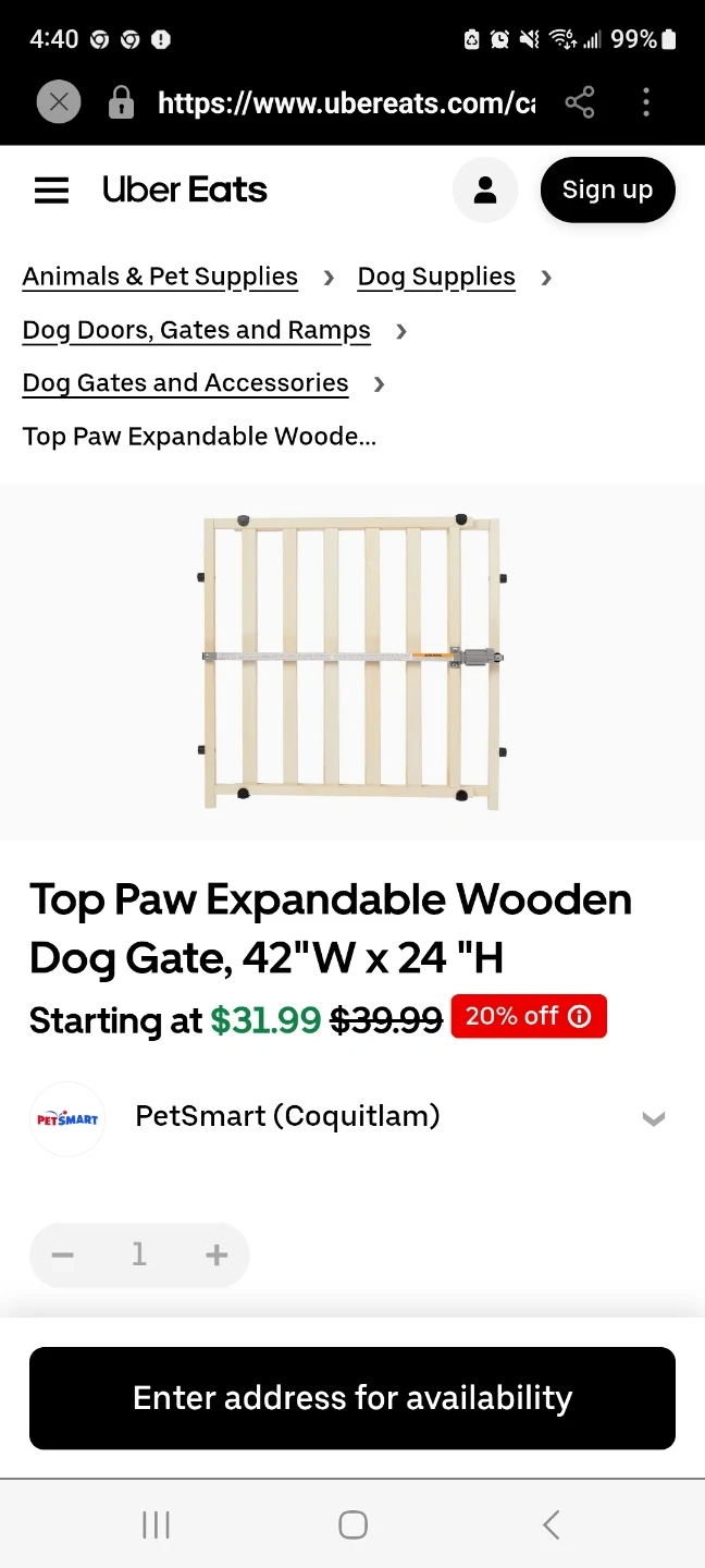 This is a Top Paw expandable wooden dog gate. It measures 42"W x 24"H. It's made of wood and has adjustable width for different doorways. Perfect for keeping pets safely contained!