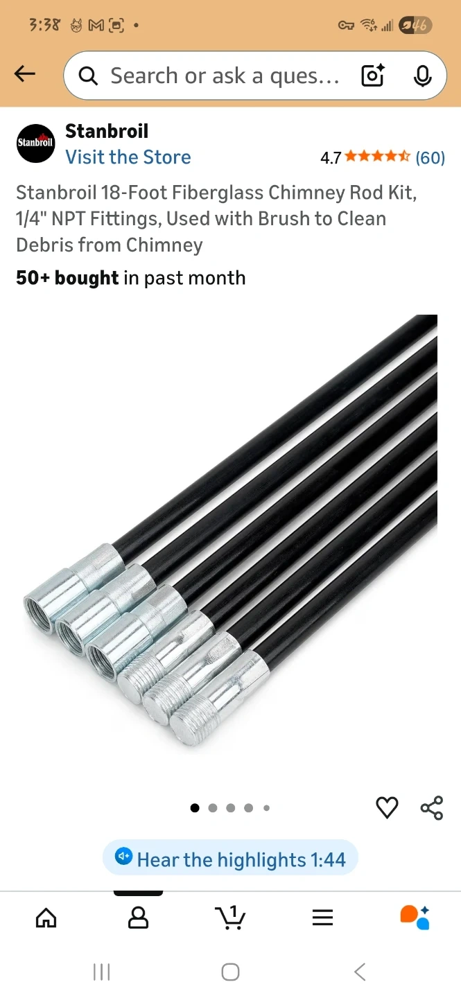 Stanbroil 18-Foot Fiberglass Chimney Rod Kit
