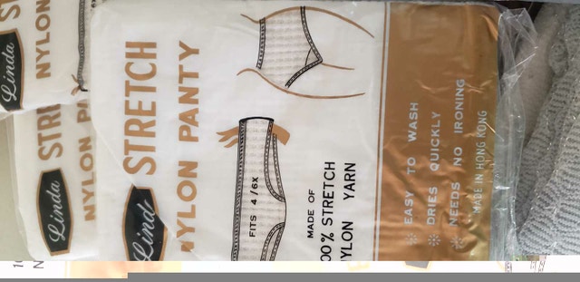 UP FOR SELL WE HAVE THIS VINTAGE LOT OF WOMEN CLOTHING. WE HAVE 20 PAIRS OF LINDA STRETCH NYLON PANTY SIZE 4 TO 6X I BELIEVE THESE ARE FOR A CHILD NEXT WE HAVE 10 PAIRS OF BLACK FISH NET SOCKS, 2 PAIRS OF GOGO SEXY SHEERS AND 5 PAIRS OF NAVY ONE SIZE FITS ALL FLATTERING STRETCH SHEERS STOCKING ALL ARE BRAND NEW ASKING $20 FOR THE LOT PICK UP ON BEAVERBROOK LANE IN KANATA THANK YOU