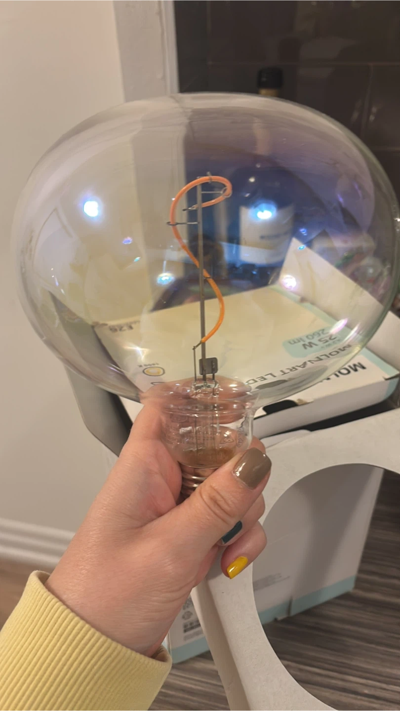 This MOLNART LED light bulb uses 4.2 W and produces 260 lumens. It has a lifespan of 15,000 hours and a color temperature of 1800 K. The bulb features an E26 base and a diameter of 150 mm. It's a decorative bulb designed for specific lighting applications.