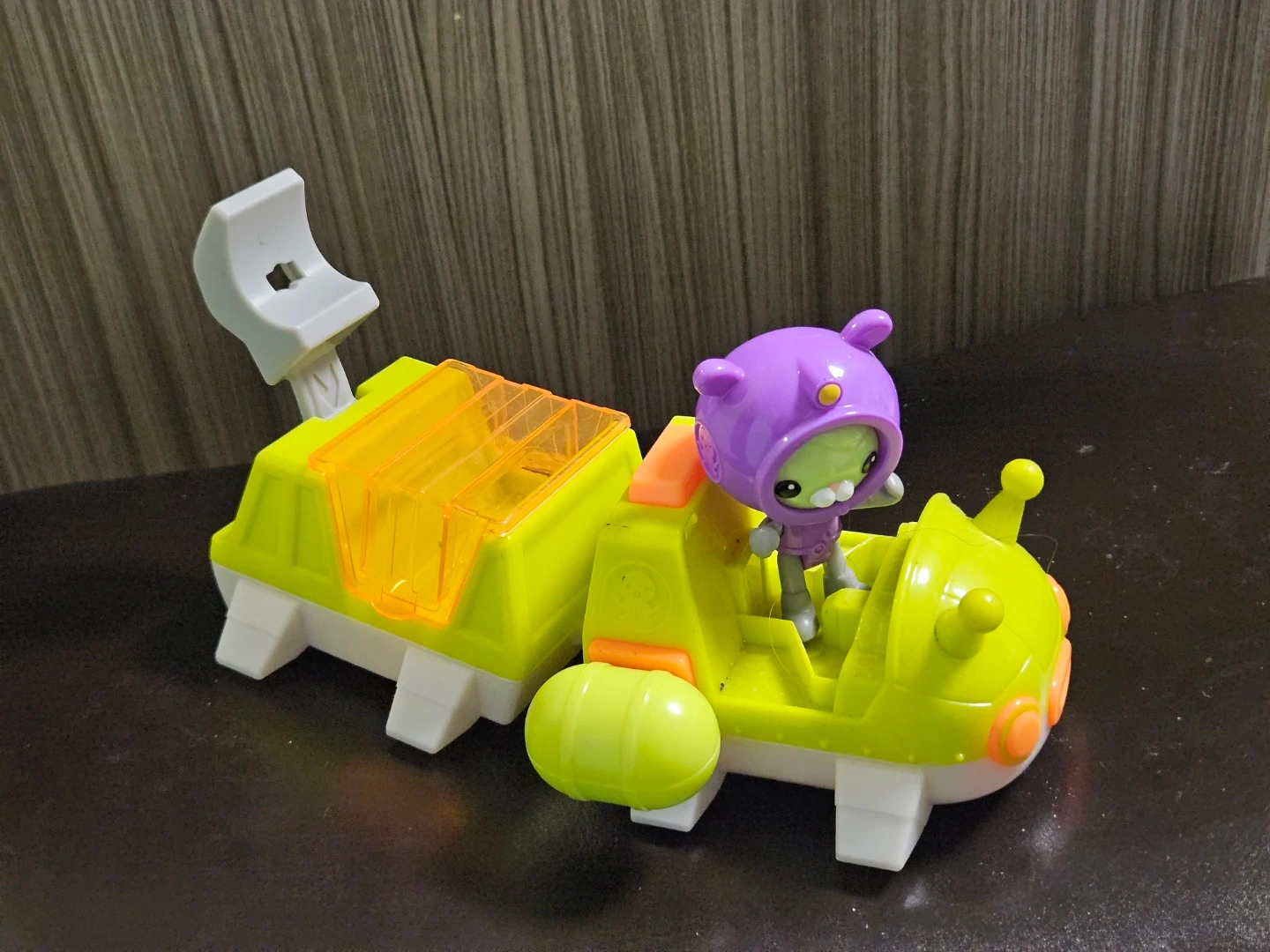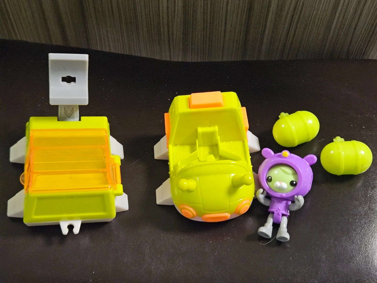 Octonauts playset with character and vehicle. Made in China by Mattel. Includes detachable vehicle parts and character figure.
