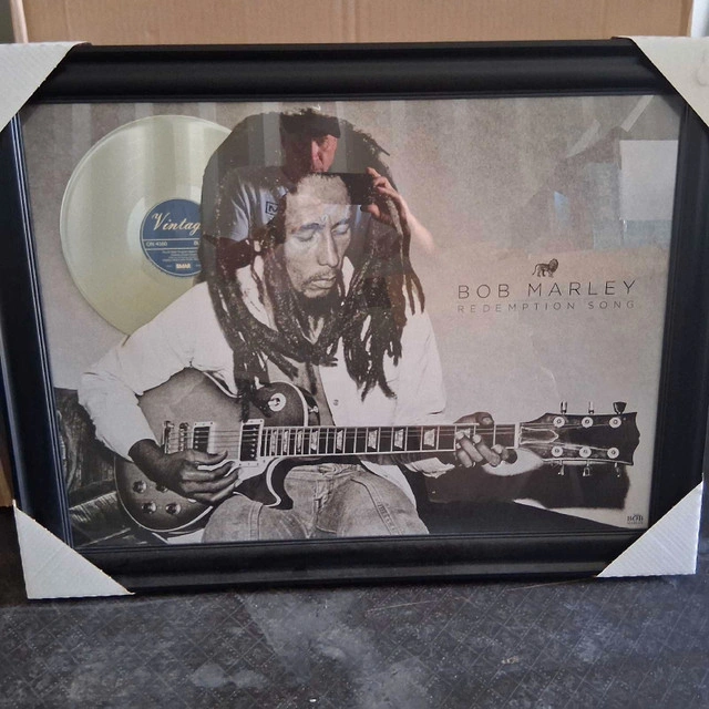 Own a piece of music history with this framed Bob Marley 'Redemption Song' gold record and photograph, a stunning tribute to the reggae legend. This piece is in excellent condition, ready to hang and inspire. Add a touch of musical artistry to your home decor! * Framed gold record and photograph * 'Redemption Song' theme * Ready to hang If the ad is up, it's available! Don't miss out on bringing this iconic image into your space – it's irie!
