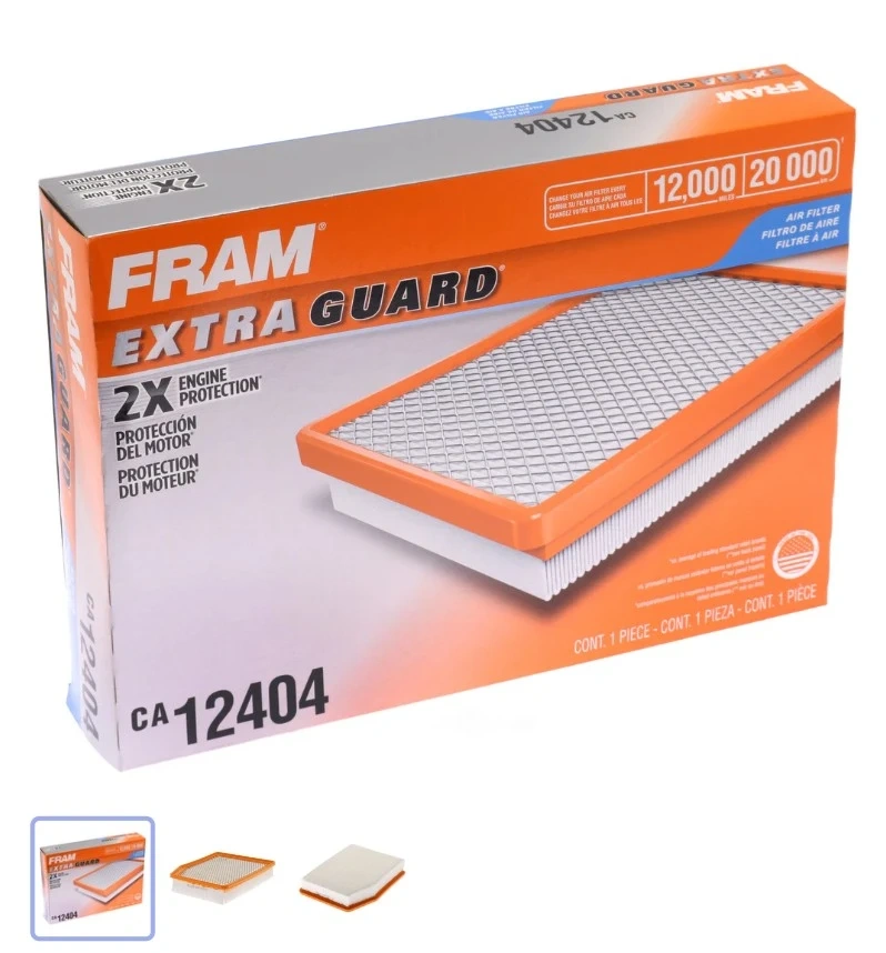 This is a FRAM Extra Guard air filter, model CA12404. It offers 2X engine protection. The filter is designed to keep your engine running smoothly.