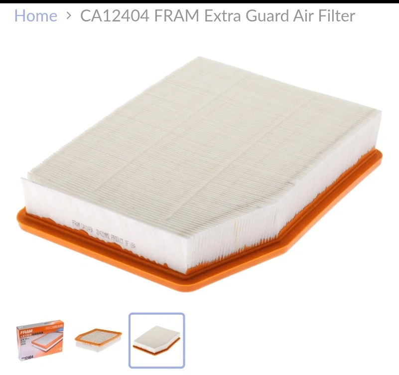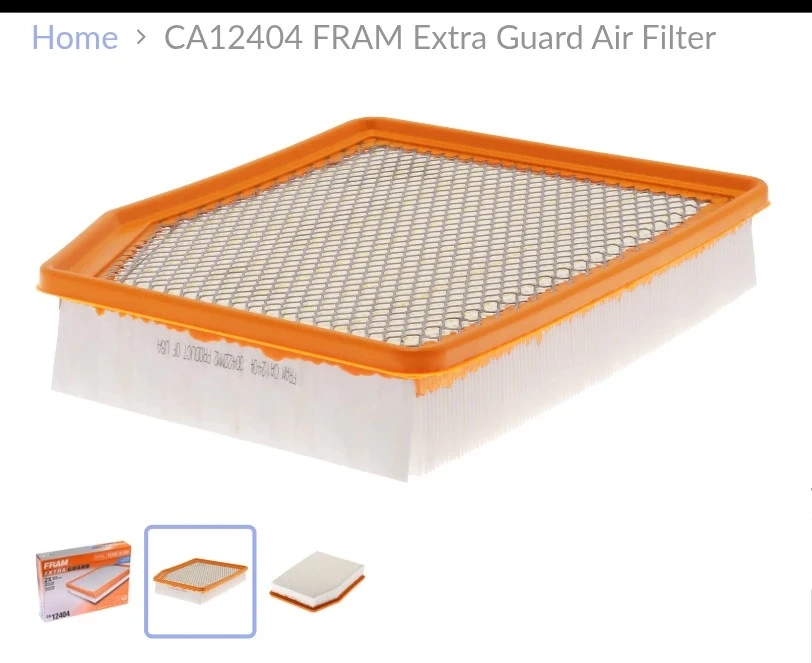 This is a FRAM Extra Guard air filter, model CA12404. It offers 2X engine protection. The filter is designed to keep your engine running smoothly.