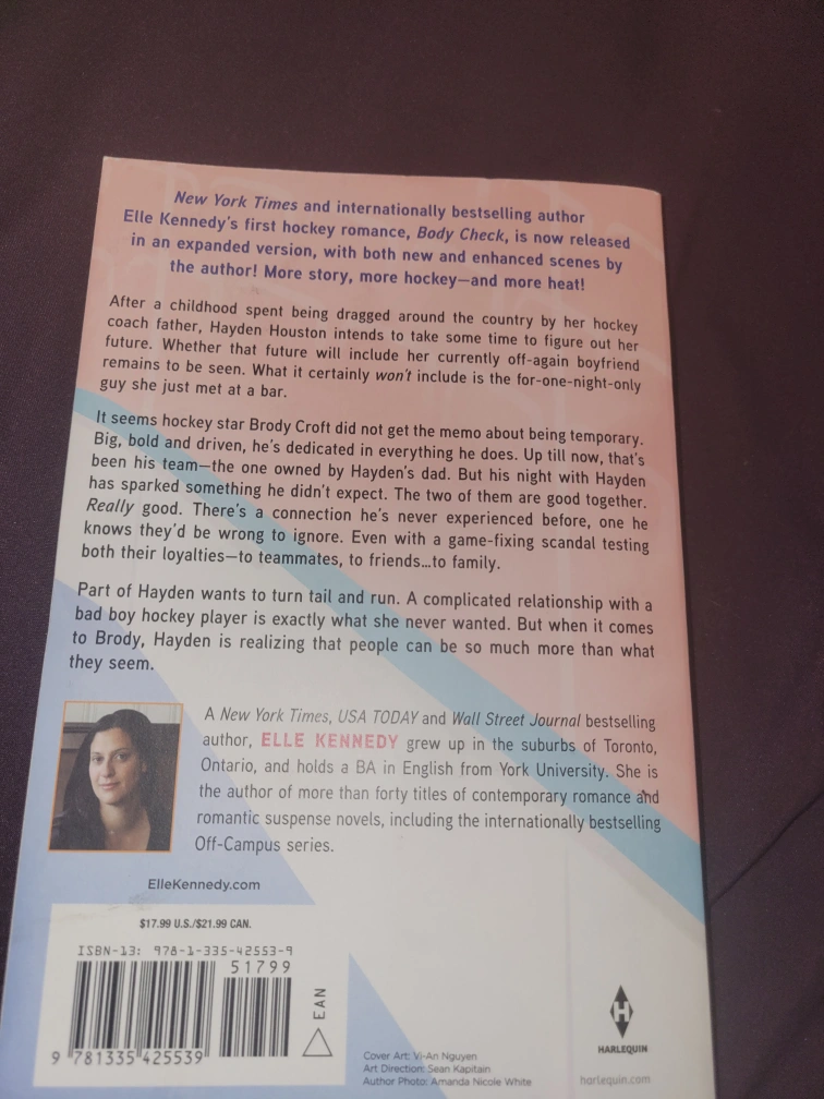 Selling the novel Body Check by Elle Kennedy! It's a New York Times and internationally bestselling novel. The book is now released in an expanded version, with both new and enhanced scenes by the author!