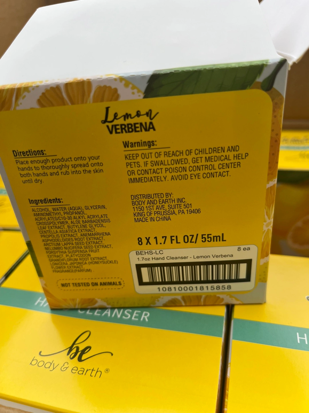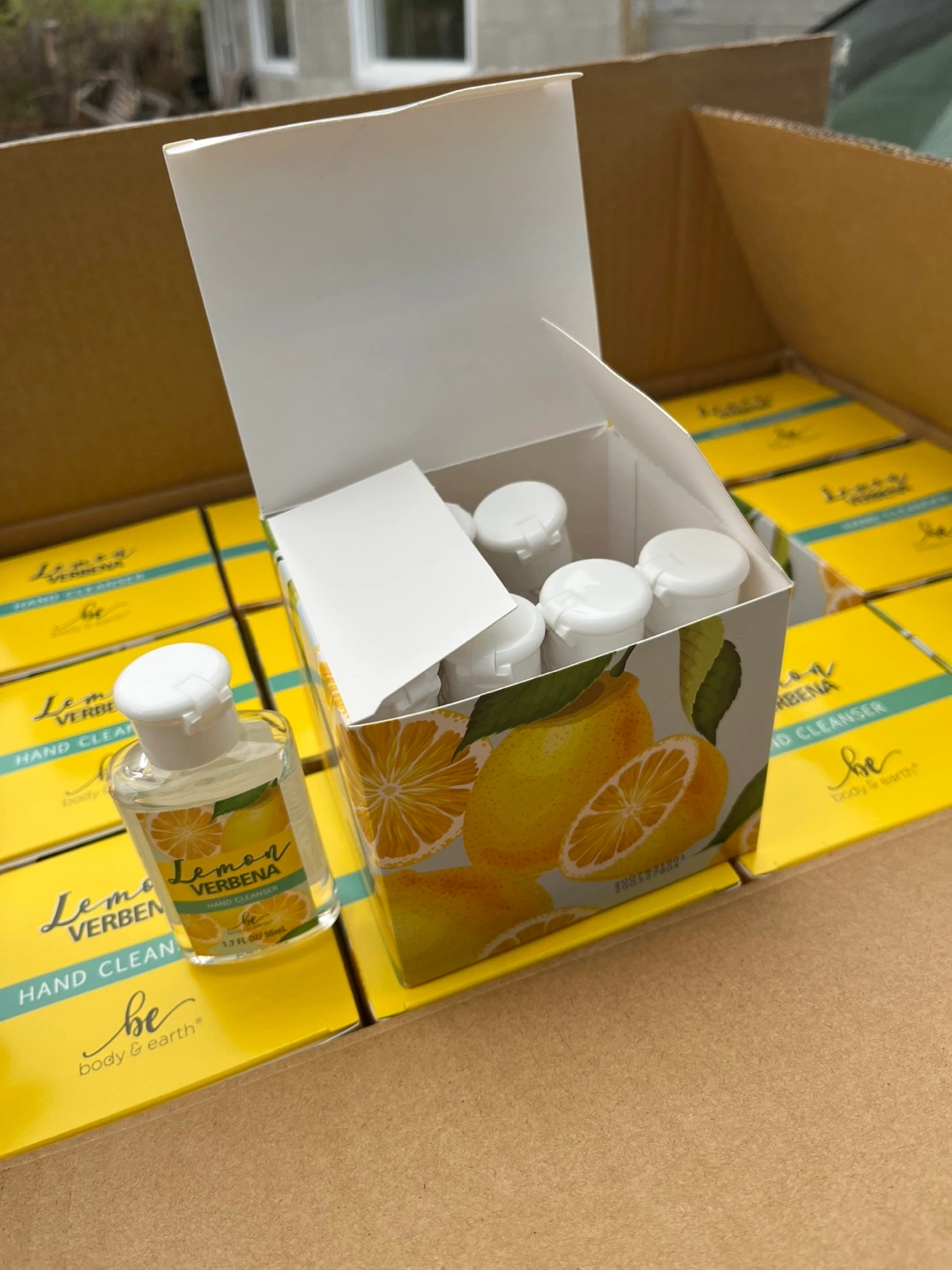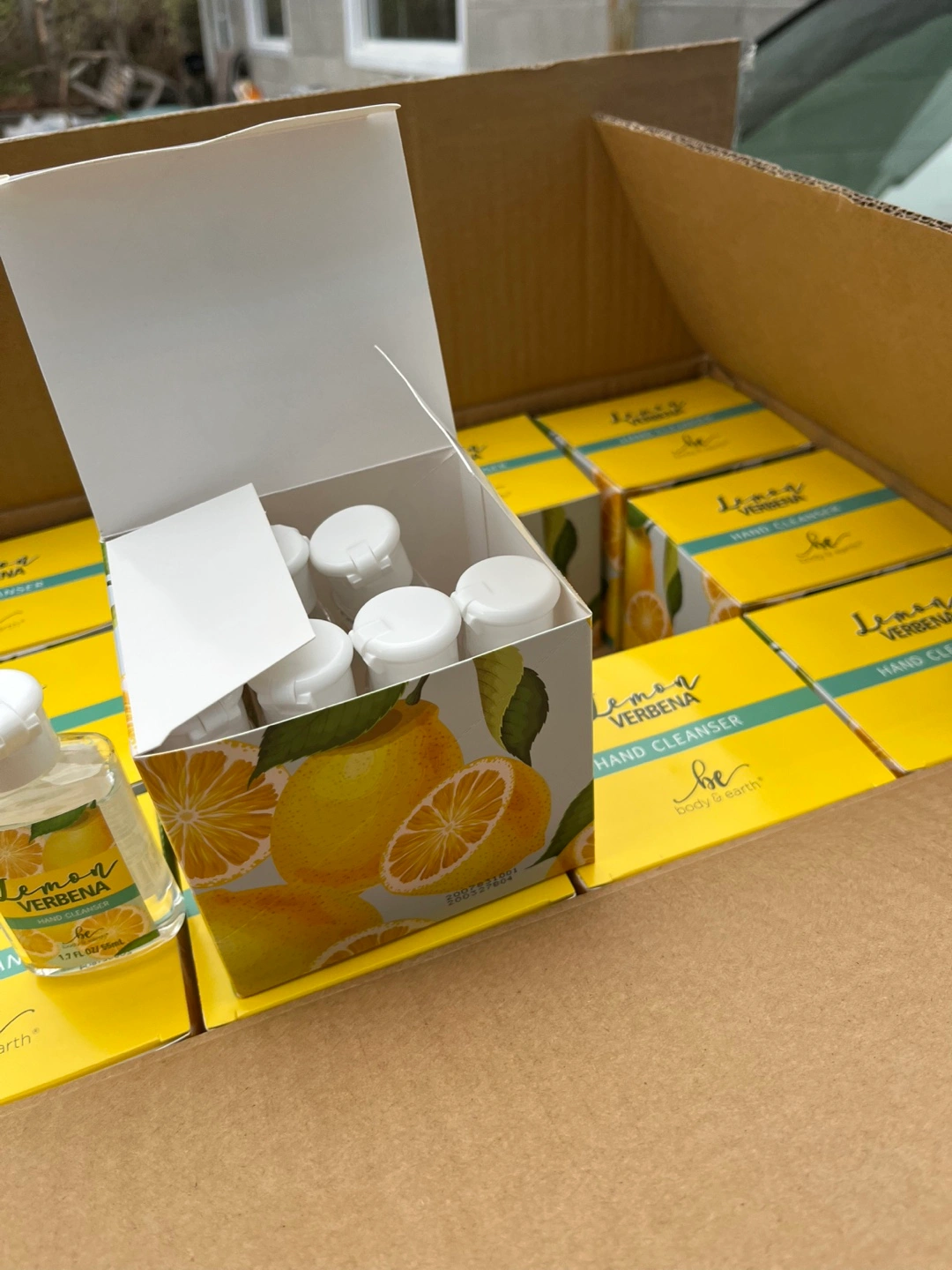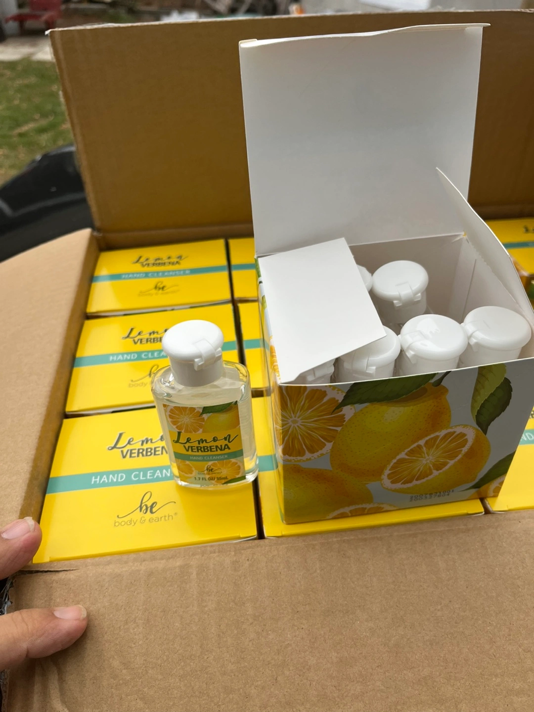 68VERBENA High End Scent Lemon Hand Cleaner Sanitizer 1.7 FL OZ 55mL from body & earth smooth hand finish.Winter is here avoid getting sick by unwanted germs and viruses keep yourself clean $40 dollars a box amazing price What does the complete 1 box contains the following I 12 units of 8 bottles per each unit $49 a complete bo