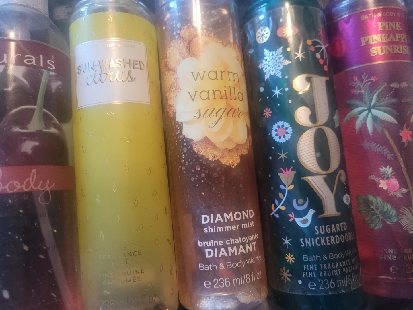 76Selling partial bottles of various body sprays. Some lids missing. 6 out of the 8 are Bath and Body Works. I can't use them.anymore due to allergies. $5 for all.