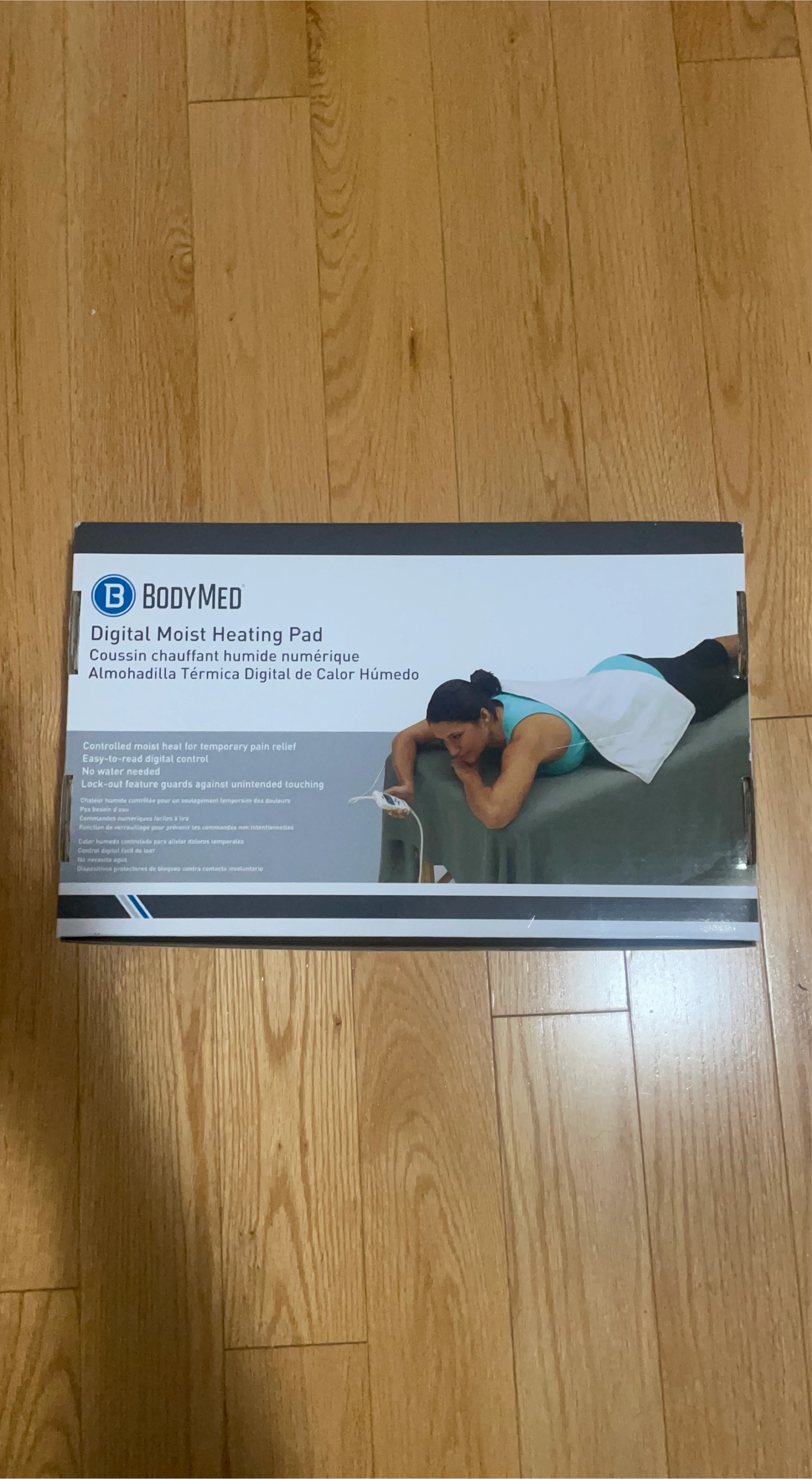 Selling a BodyMed digital moist heating pad. It's perfect for temporary pain relief with controlled moist heat. It also has a lock-out feature to guard against unintended touching. Comes with the original box