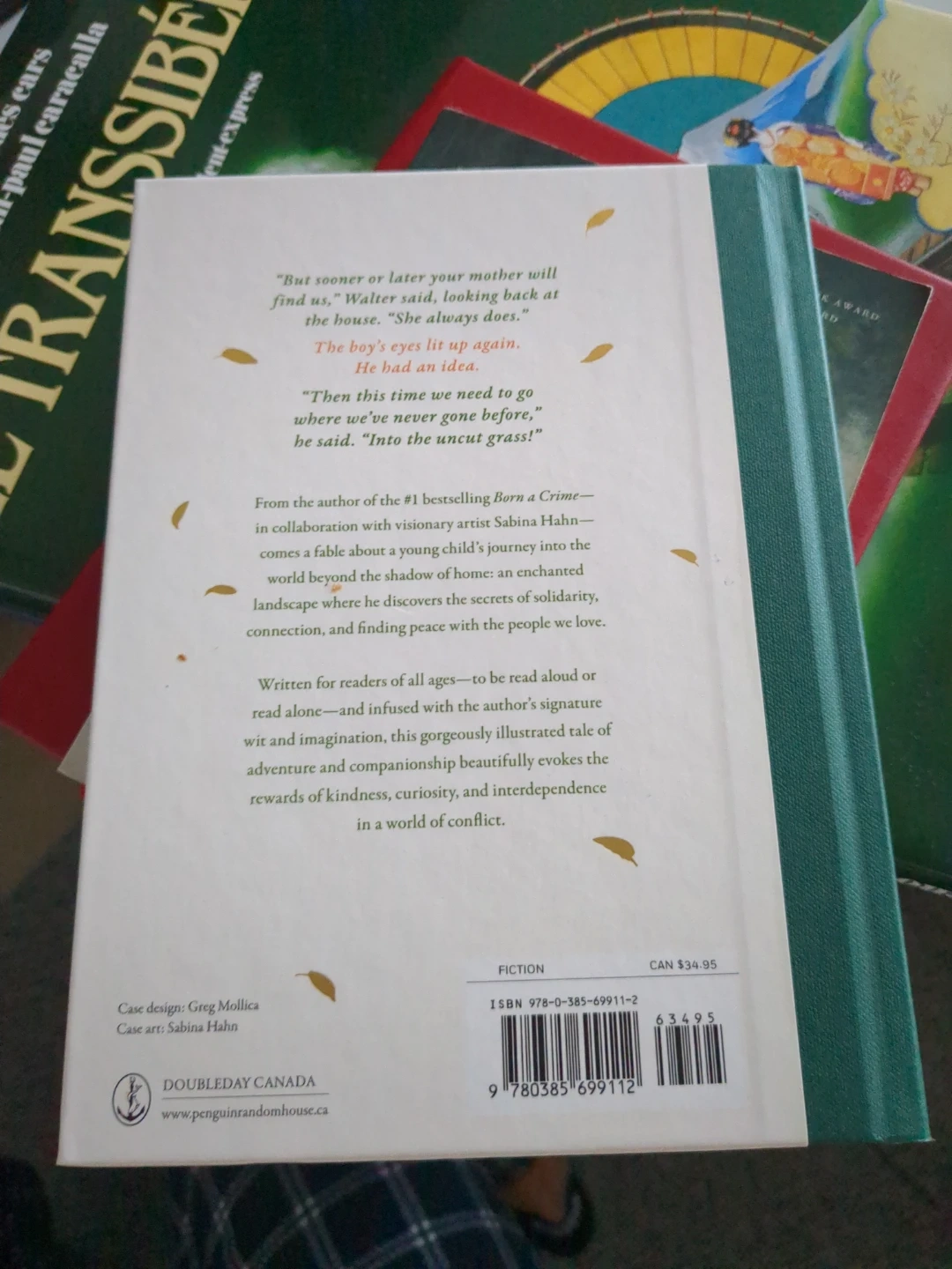 This is 'Into the Uncut Grass' by Trevor Noah. It's illustrated by Sabina Hahn. Fiction, suitable for readers of all ages. Published by Doubleday Canada.