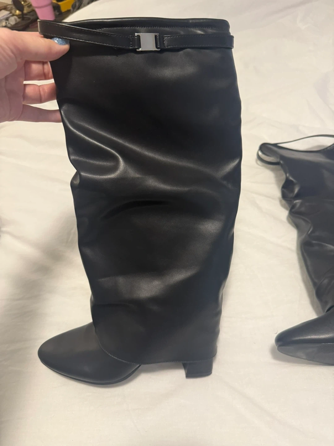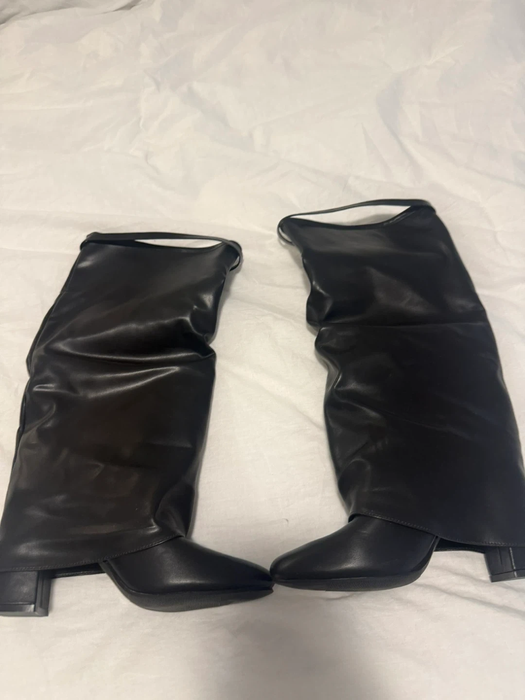 These are a pair of black knee-high boots. Like new condition and would be a stylish addition to any wardrobe! They are a classic design and a versatile colour. Worn only to try on. Size 8. They were bought to be part of a “Tate McRae “ concert outfit and never worn.