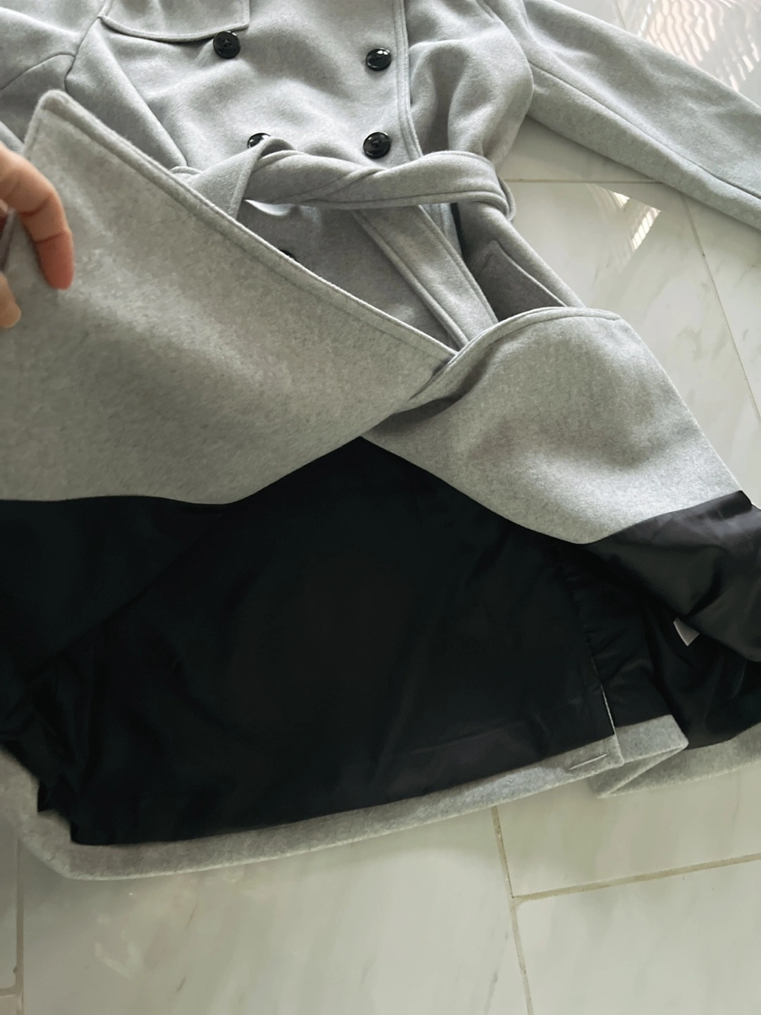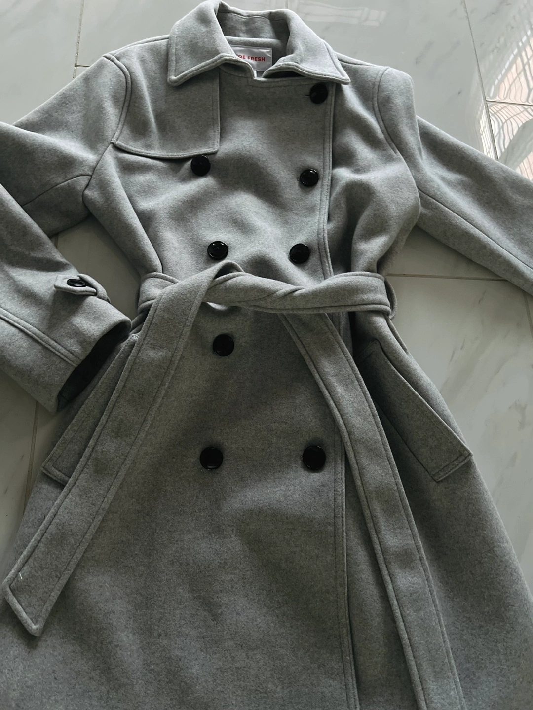 NEW double breasted coat . Grey color. Size MEDIUM