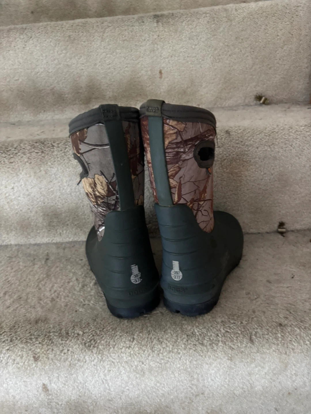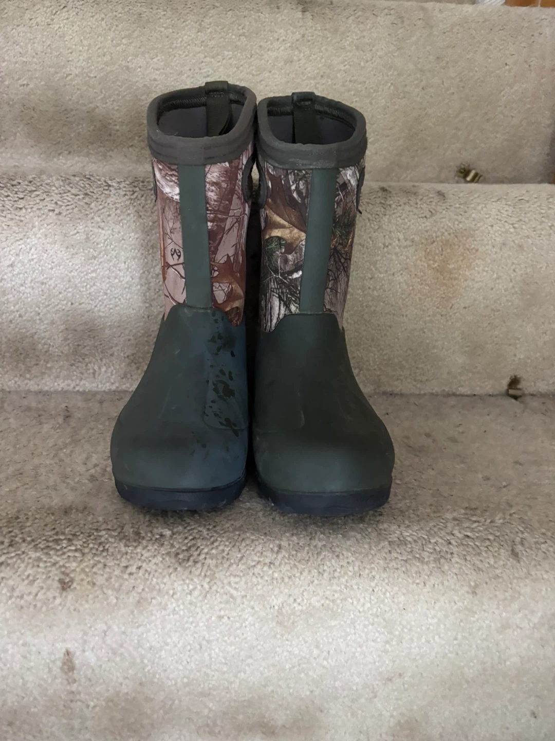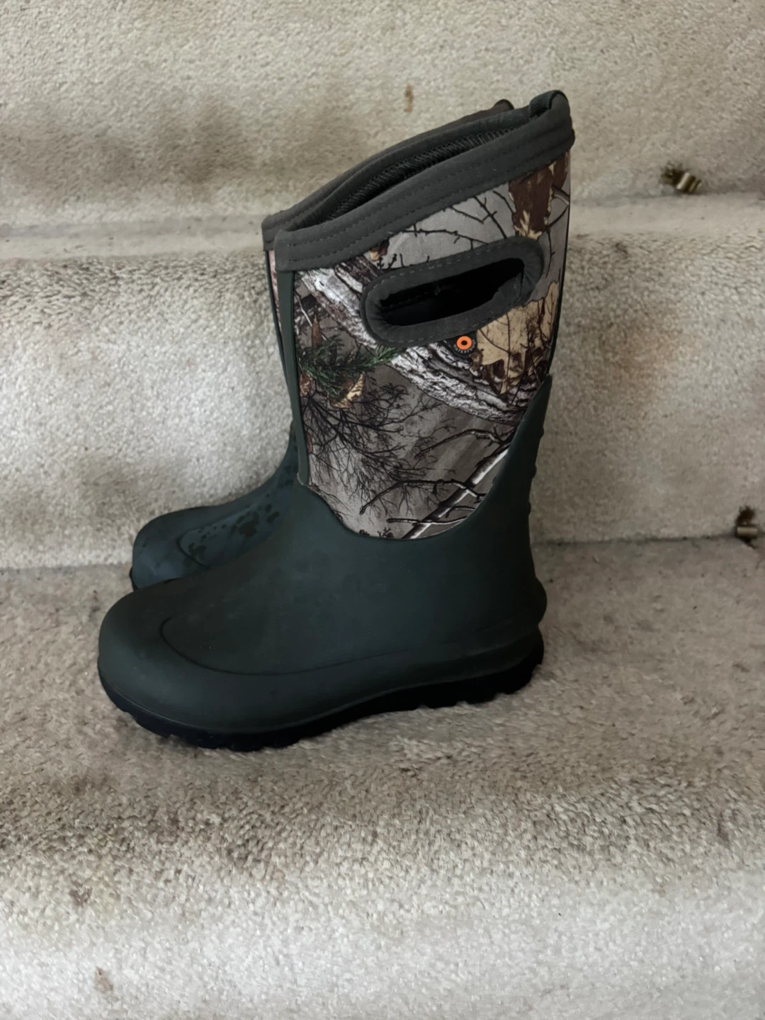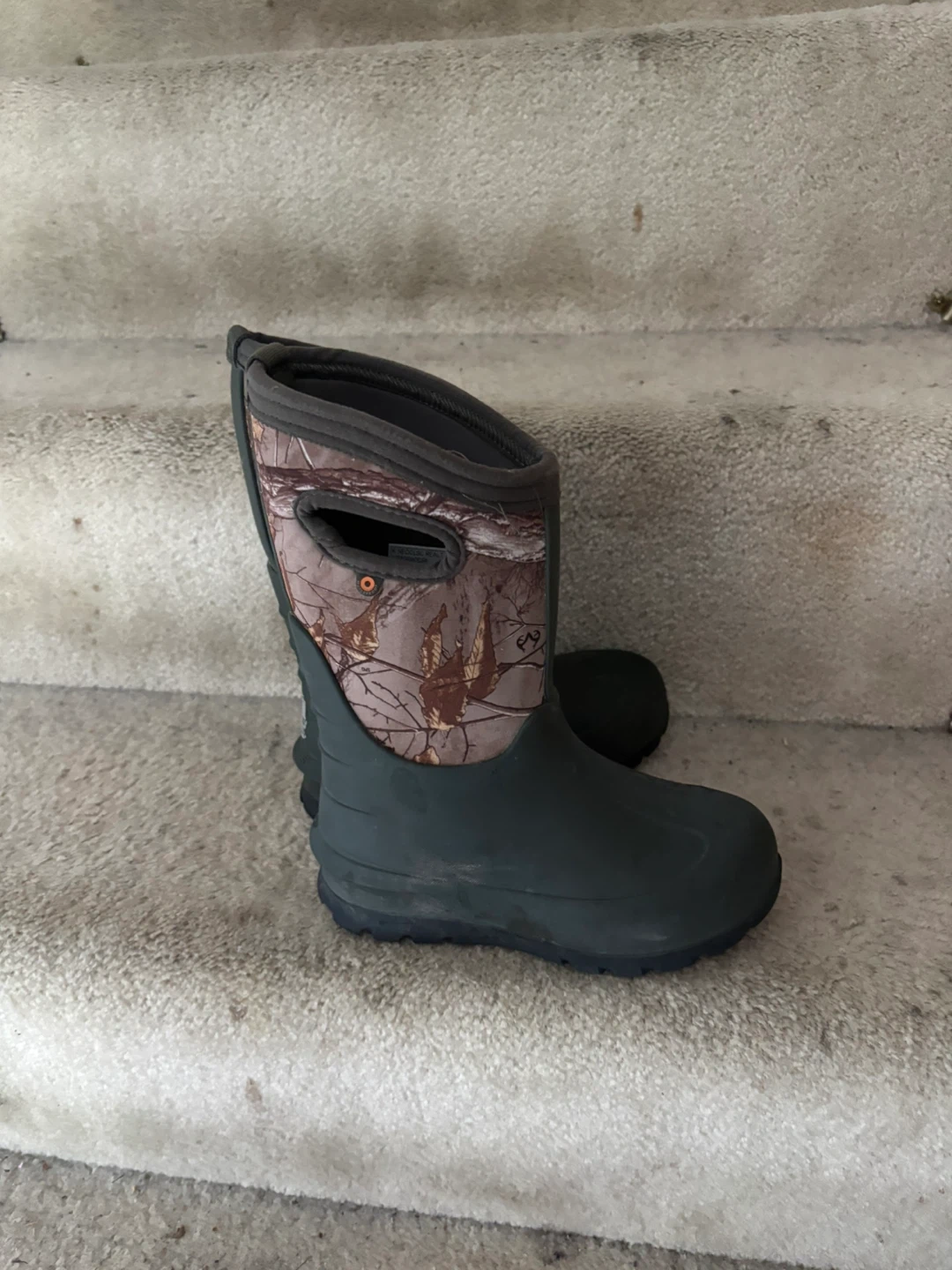 65Selling a pair of Bogs winter boots in a camo pattern! They are insulated to keep your little one's feet warm and dry during the cold winter months. The boots show some signs of wear but are still in good condition and ready for another season of fun! One boot is faded but only used for a couple months