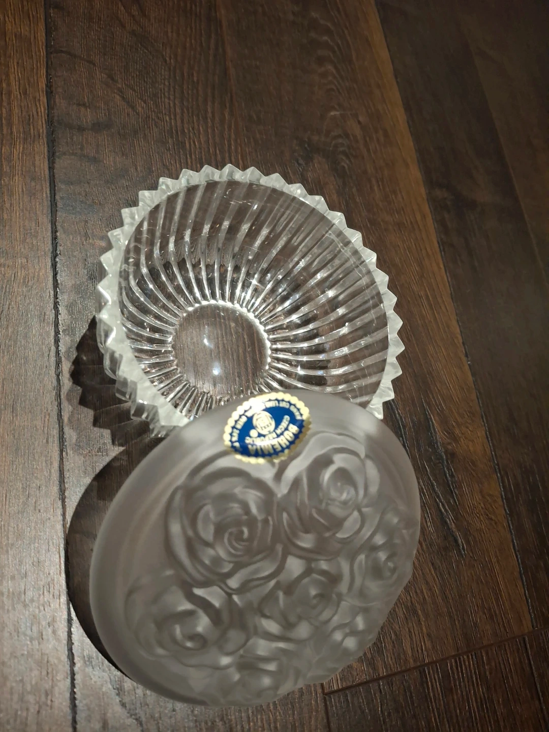 10Selling a brand new Bohemia Crystal covered trinket dish! It's still in its original box, so it would make a lovely gift. The dish features a beautiful rose design on the lid and a classic crystal cut on the base. Perfect for an amazing Christmas gift for someone dear. 2 pieces available. Price given per piece