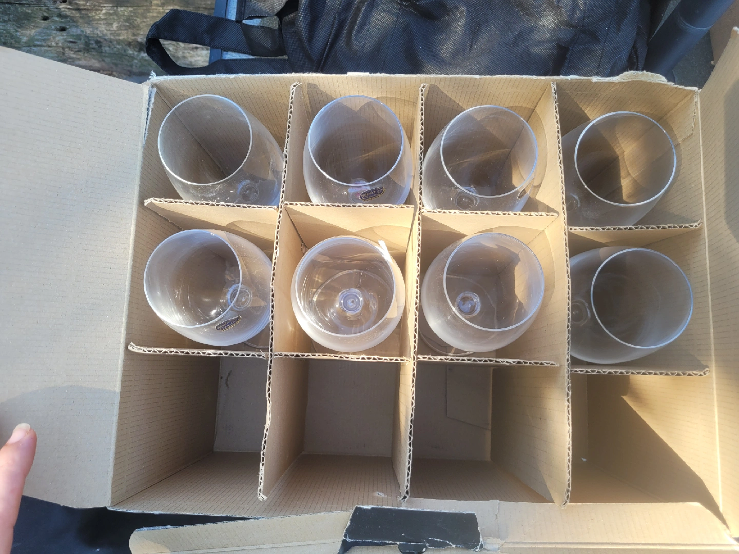 Selling a set of 8 Bohemia Crystal wine glasses. These are dishwasher safe and hold 380ml/13 1/2 oz. The glasses are in excellent condition and come in their original box! Box lid is separated from base.