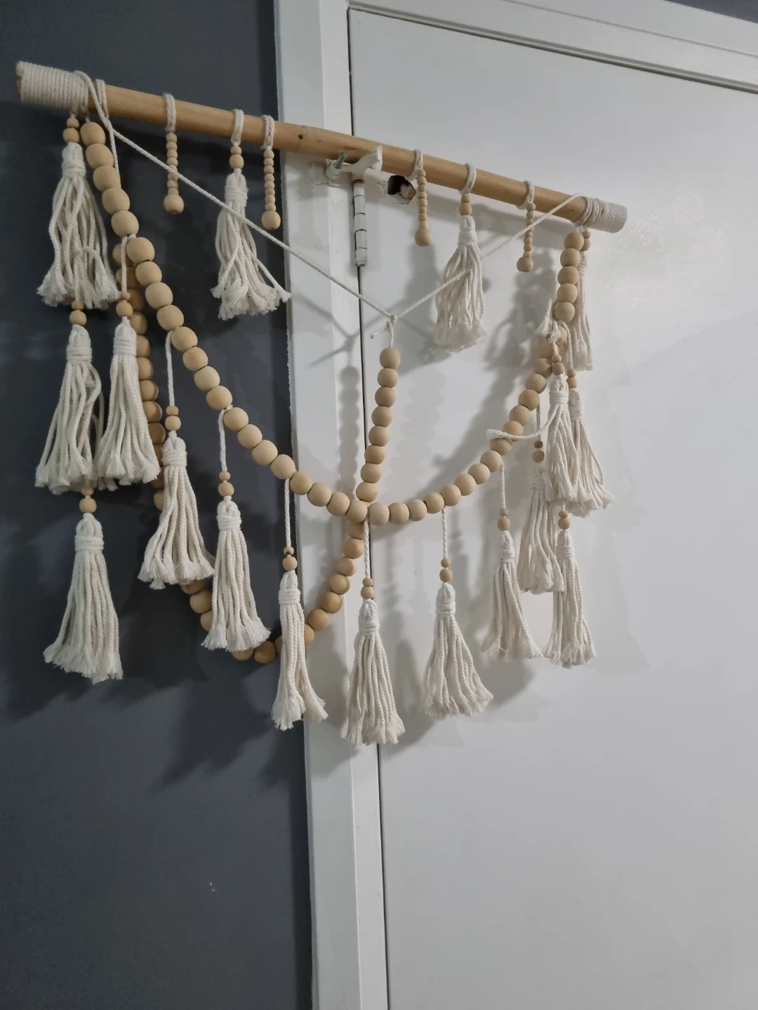 1000+Add a touch of boho charm to your space with this lovely wall hanging! Features natural wood beads and soft white tassels. Perfect for adding texture and warmth to any room Please donate to Jamaica which was devasted by Hurricane Melissa anything is appreciated ππ―π² https://gofund.me/997a9a59c