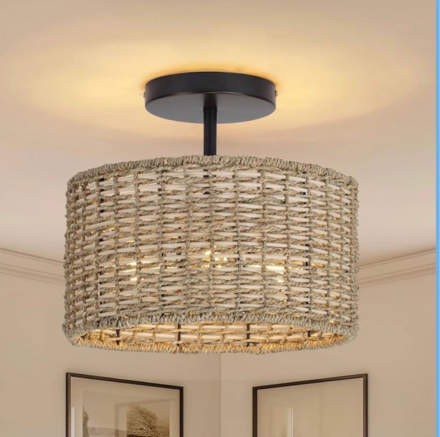 Add a touch of bohemian style to your home with this woven rattan ceiling light fixture! The light is crafted from woven natural rattan, creating a vintage aesthetic. It's easy to install and will add a cozy and inviting atmosphere to any room. Originally bought for $79.99. Bulbs are not included. Pickup/drop off Newmarket