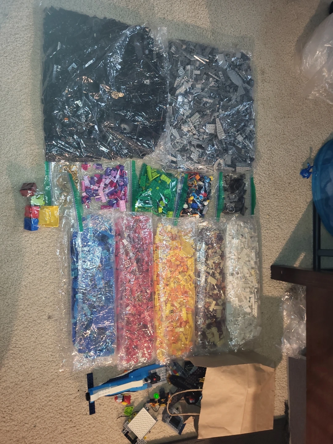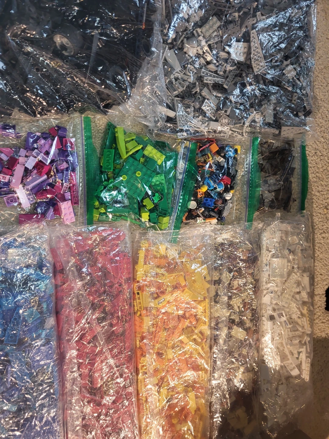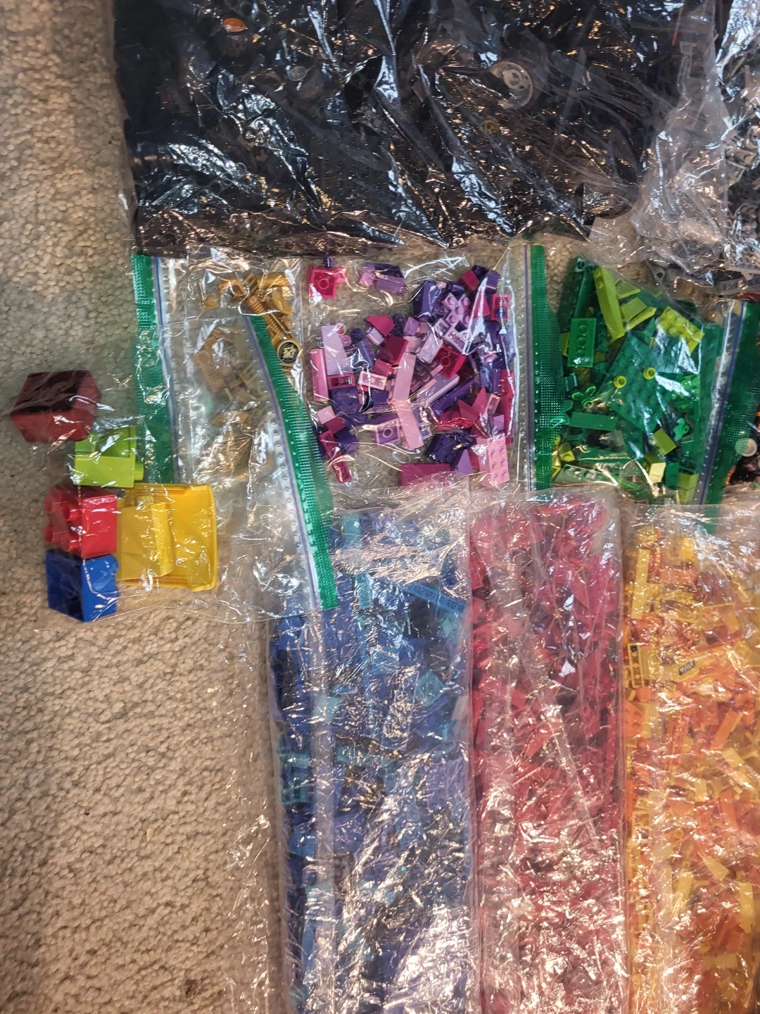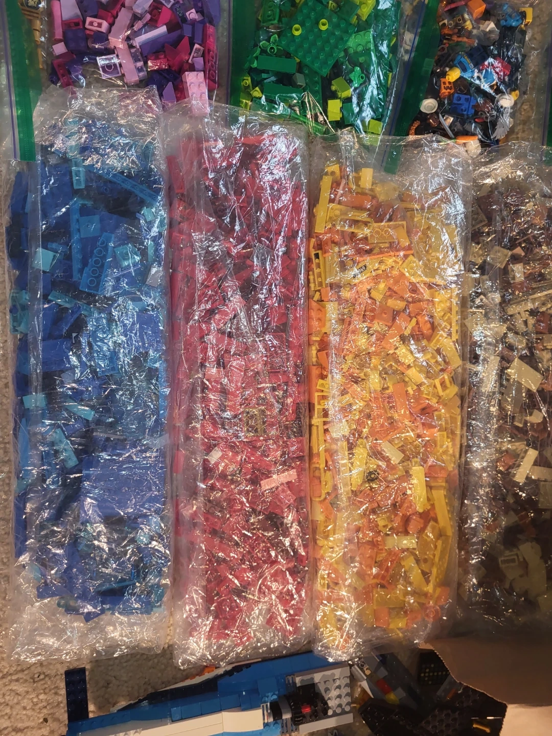 A large collection of assorted building bricks in various colours. Includes many small pieces for detailed creations. These bricks offer endless building possibilities for creators of all ages.
