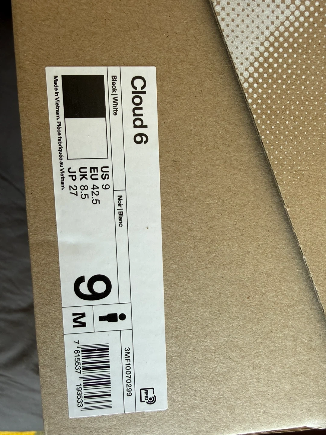 Brand new On Cloud 6 running shoes in Black/White. Size US 9 (EU 42.5). These shoes offer a lightweight and comfortable feel for your runs.