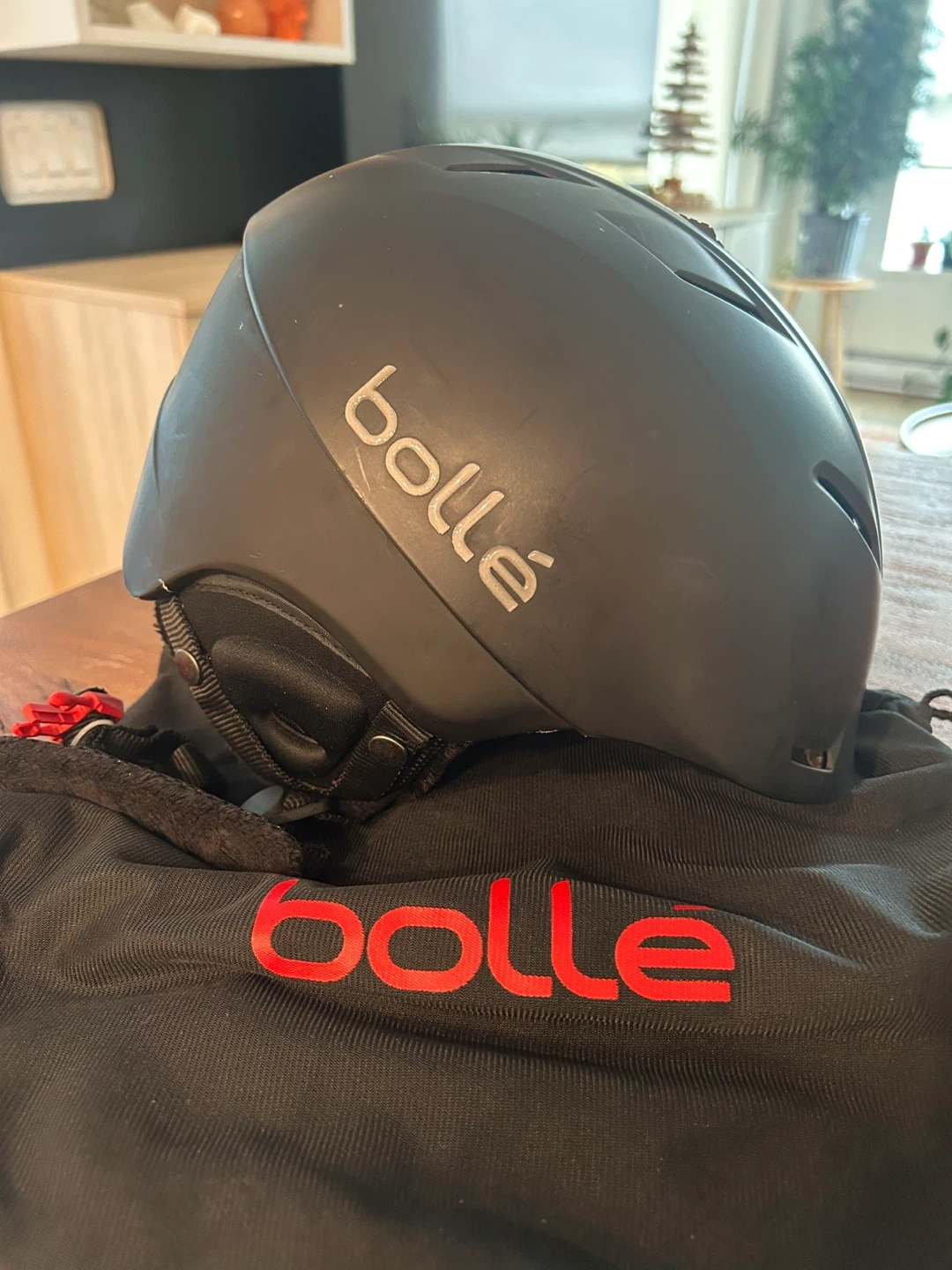 5Selling a Bollé ski helmet in size L (57-59 cm). It's in good condition and ready for the slopes! Also included are Smith ski goggles.