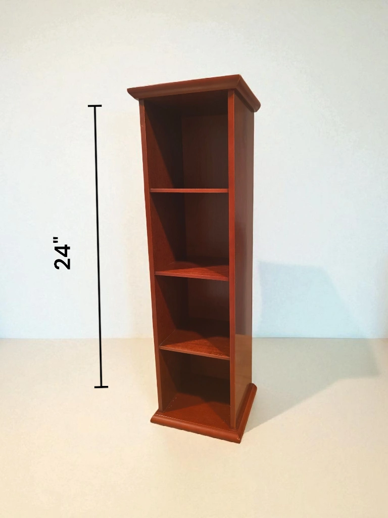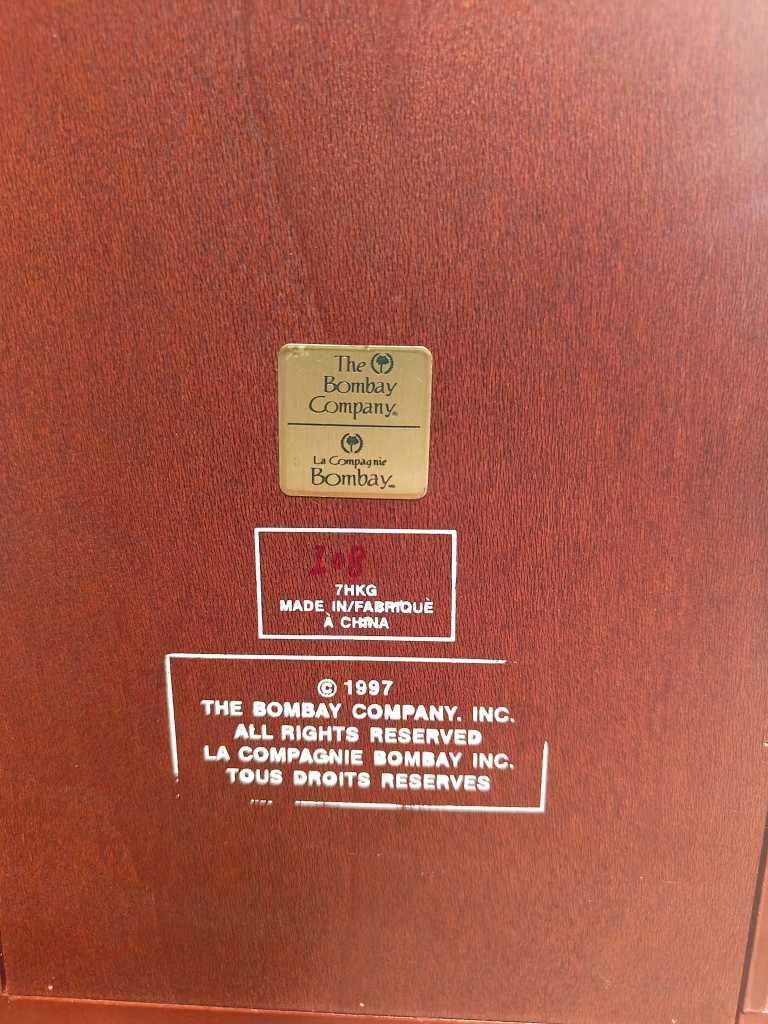 Bombay Wooden Shelf – Elegant and Sturdy Beautiful Bombay Company shelf, perfect for displaying décor, CDs or collectibles. Height: 24 ¾" Width: 7.5" Depth: 6.5' Each shelf: 5 ¾" Squared Solid construction and timeless design — great for adding classic style to any room. Excellent condition, from a smoke-free home. The bottom shelf has some wear, Easily covered with objects