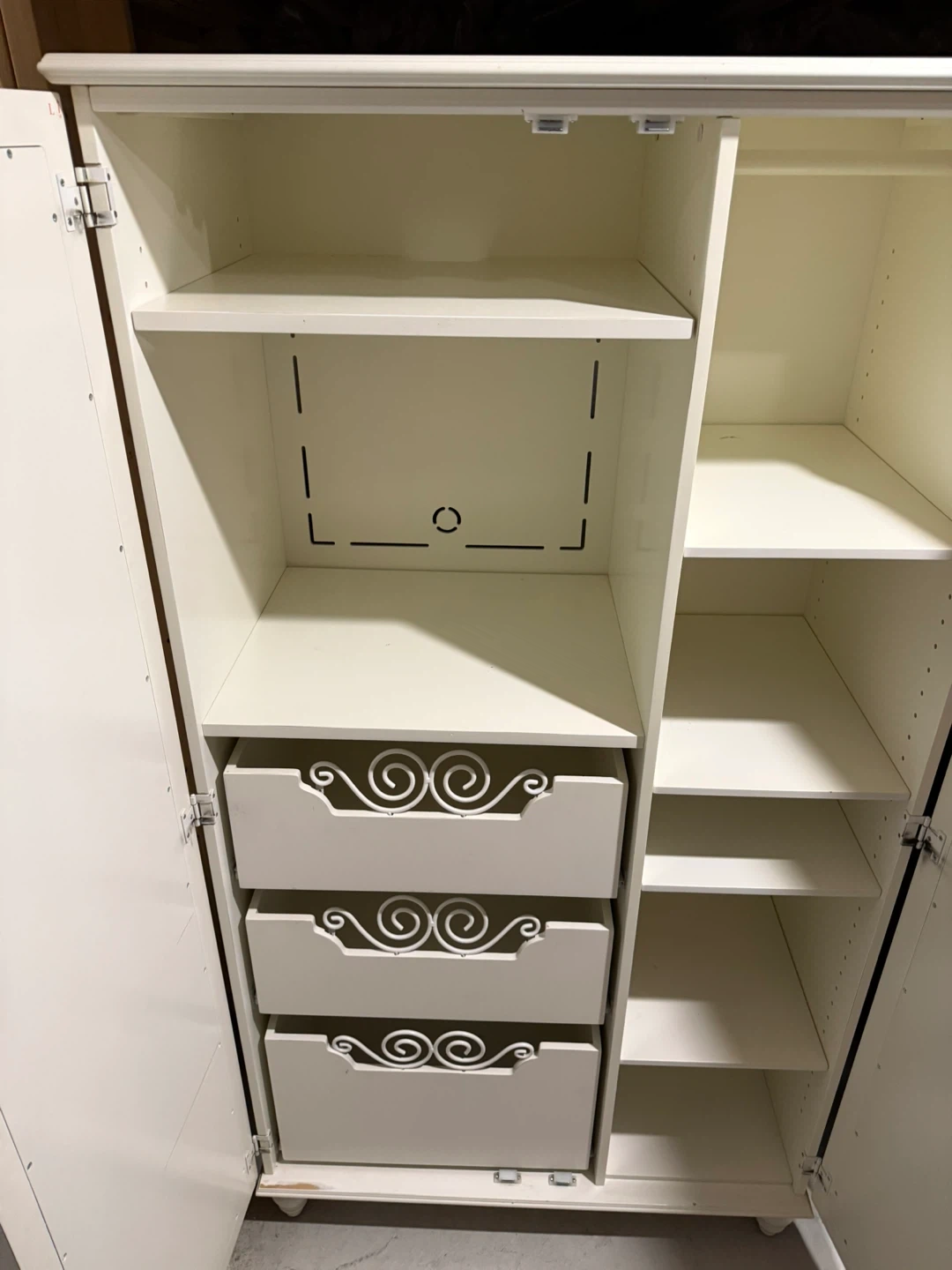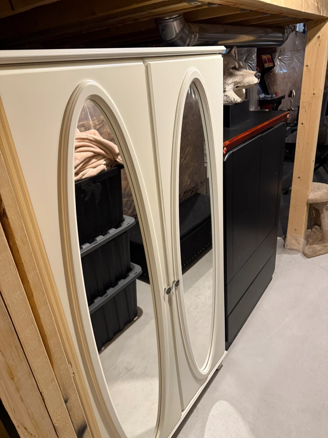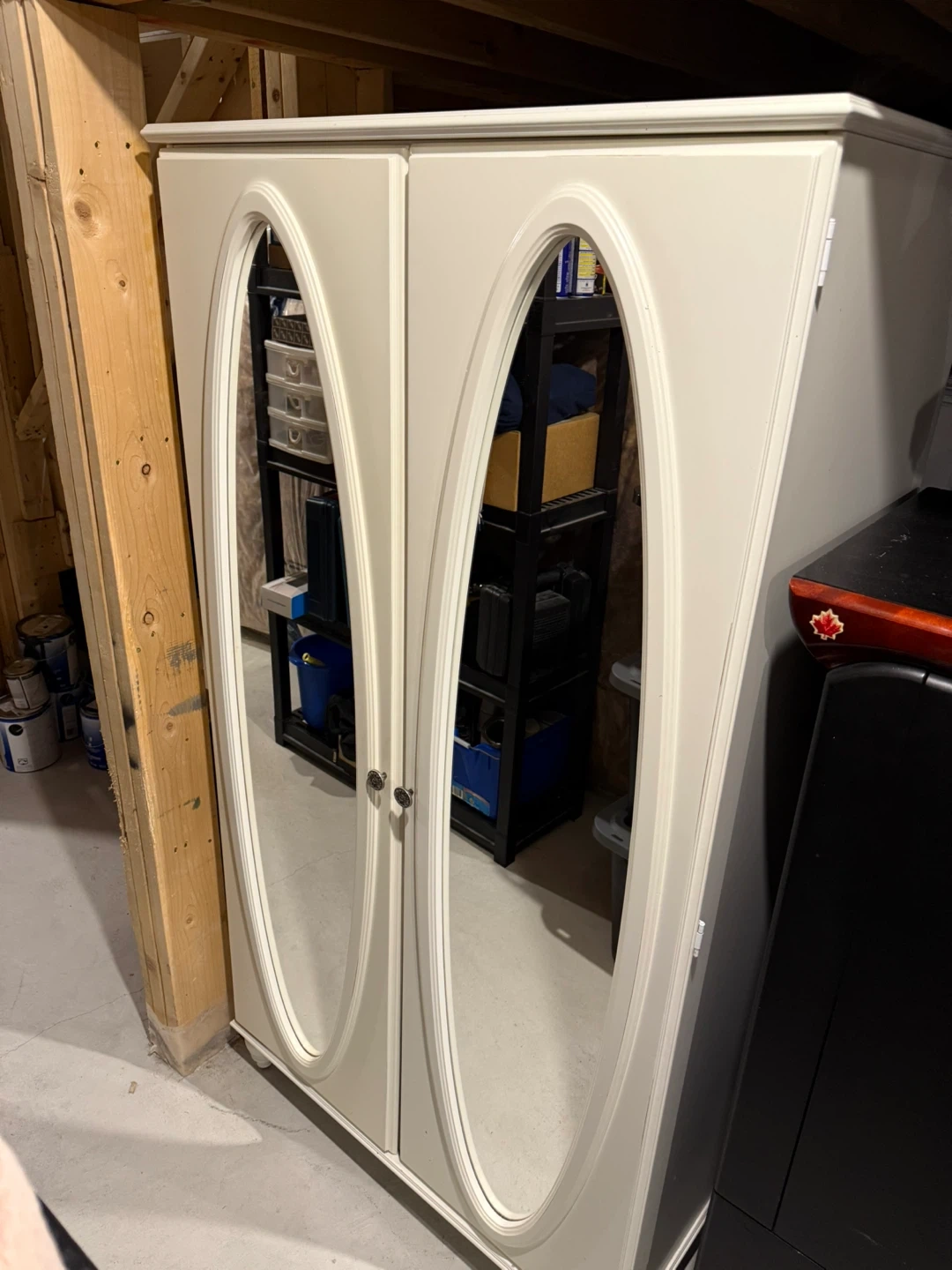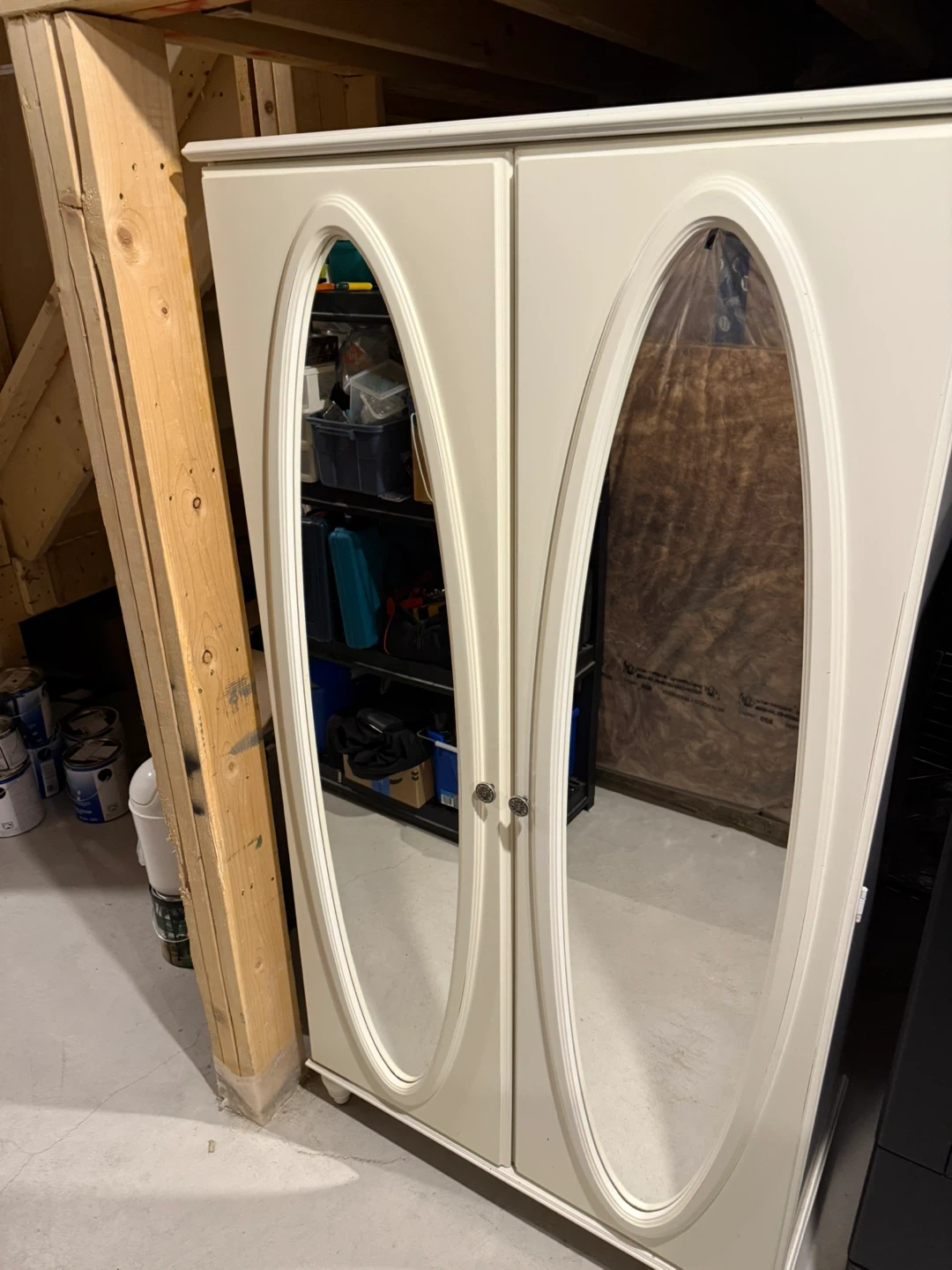 Selling a vintage Bombay Kids Emily Amoire/wardrobe. It features mirrored doors and provides ample storage space with shelves and drawers. Perfect for organizing your clothes and accessories in style. It's in great condition and ready for a new home!