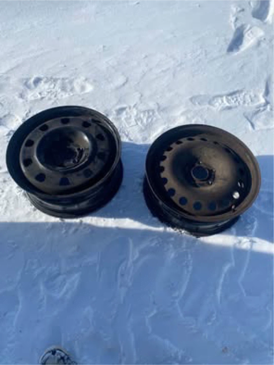 Two 17” steel wheels for sale. Bolt pattern is 5x100 Good for winter tires or as spares.