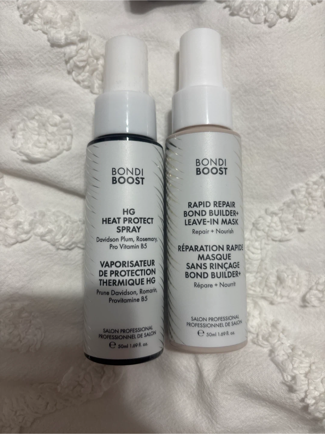 313Selling a Bondi Boost duo! Includes the HG Heat Protect Spray and the Rapid Repair Bond Builder+ Leave-In Mask. Both are salon professional size at 50ml each. Perfect for repairing and nourishing your hair!