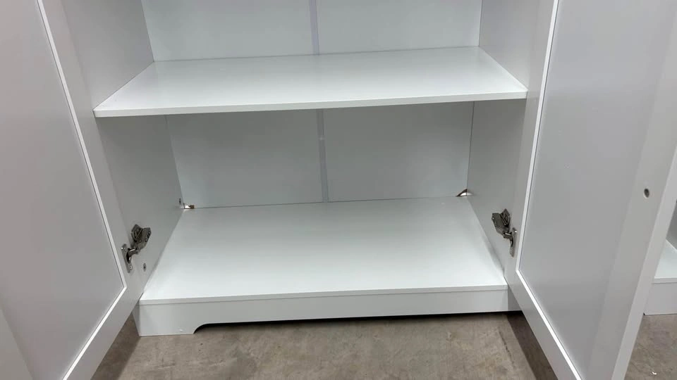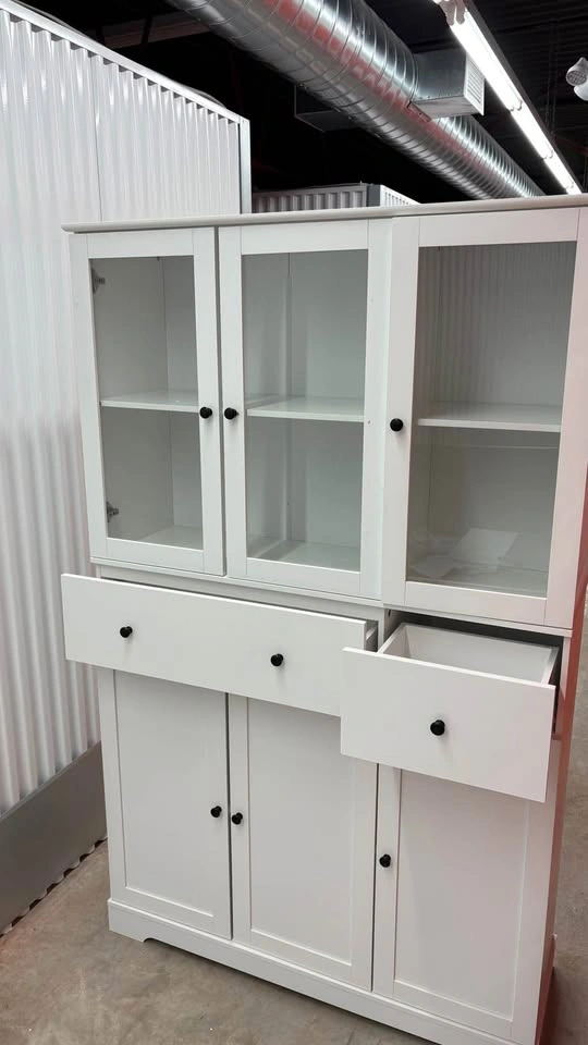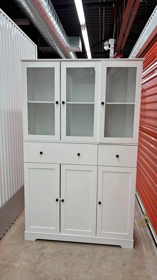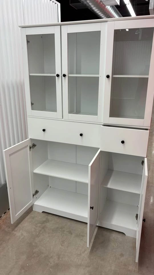 24For Sale: new assembled Cash only! - Design: Elegant bookcase with glass doors, drawers, and shelves - Dimensions: 66.9" H x 41.7" W x 14" D - Material: Manufactured wood (particleboard/chipboard) - Features: - 6 glass doors for a sleek, modern look
