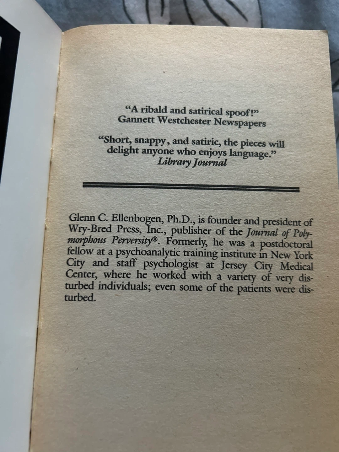 It's true. Members of the psychiatric community are capable of laughter. The Journal of Polymorphous Perversity, the brainchild of psychologist Glenn C. Ellenbogen, has received confirmed reports of uncontrollable outbursts of laughter as the pages of the scholarly parody are sampled.