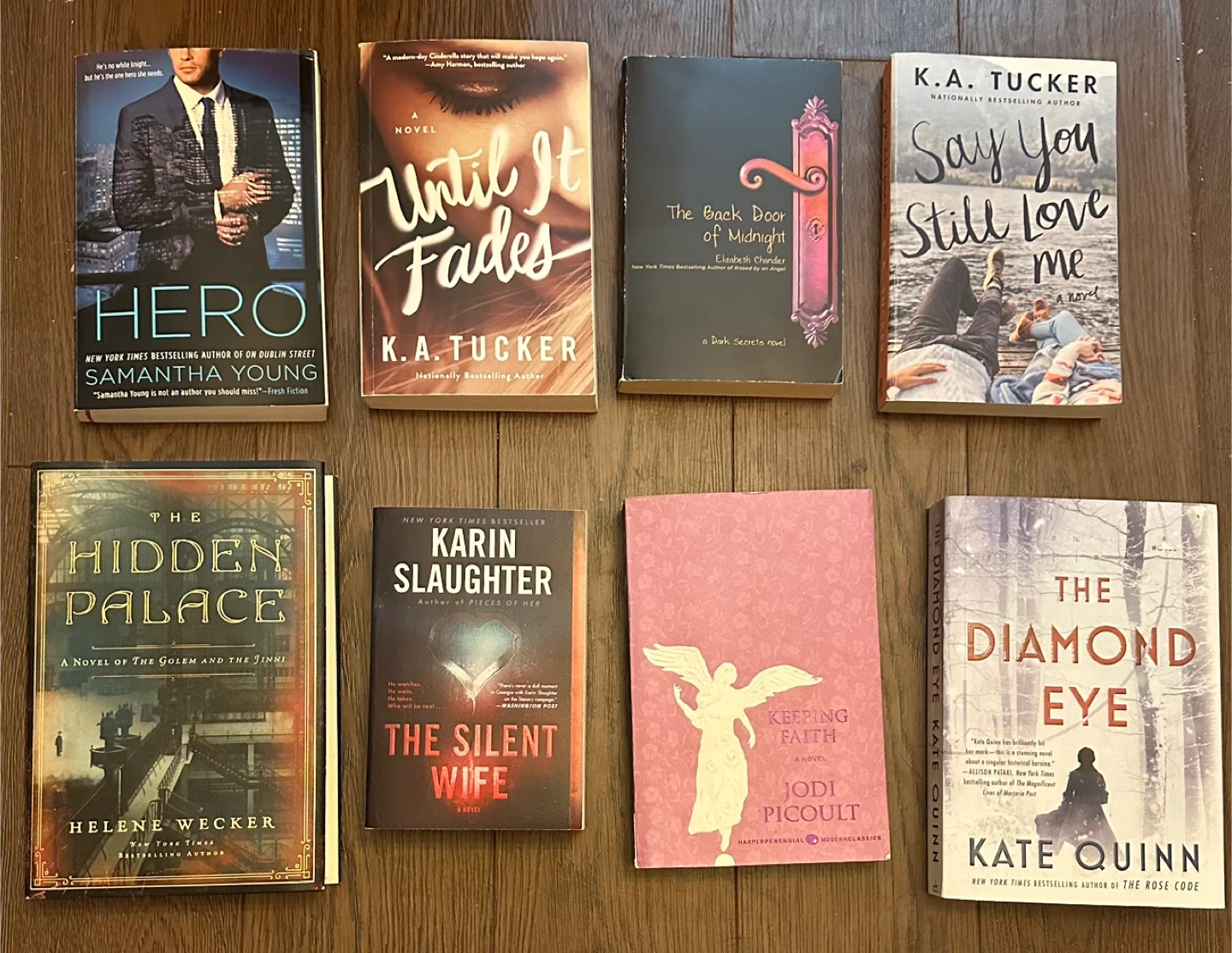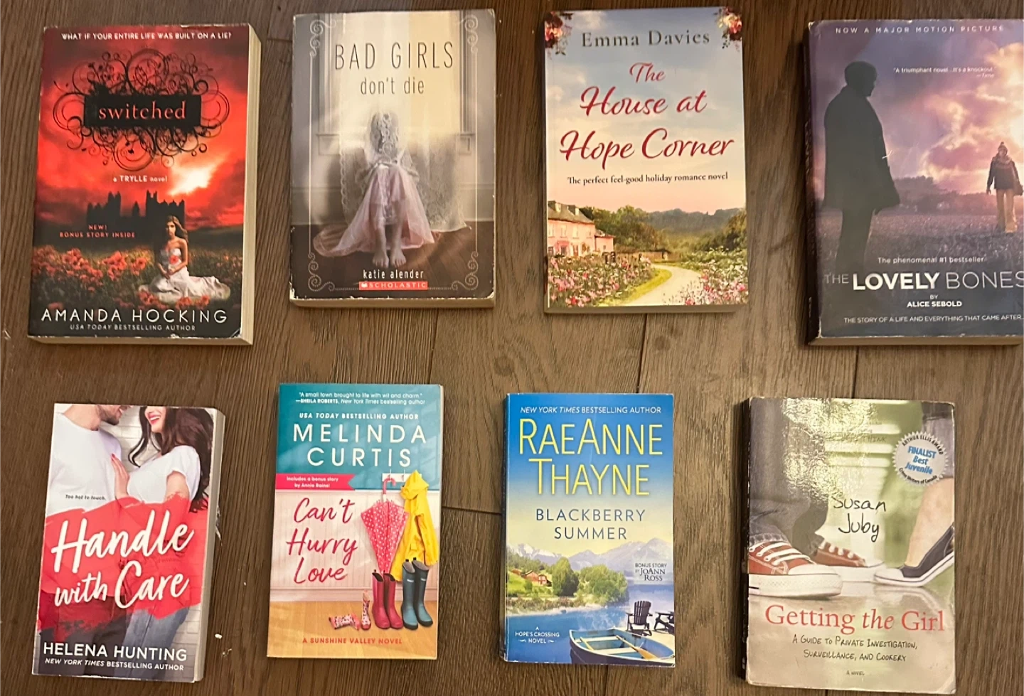 15$10 per book, possible deal if more than one book is bought Romance, thriller, etc - a variety of books
