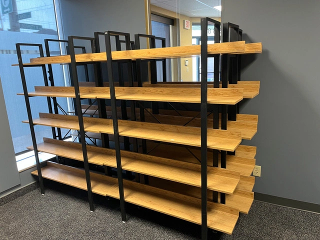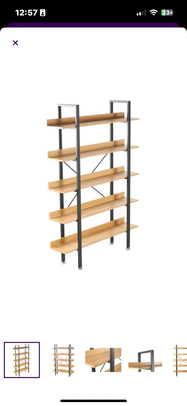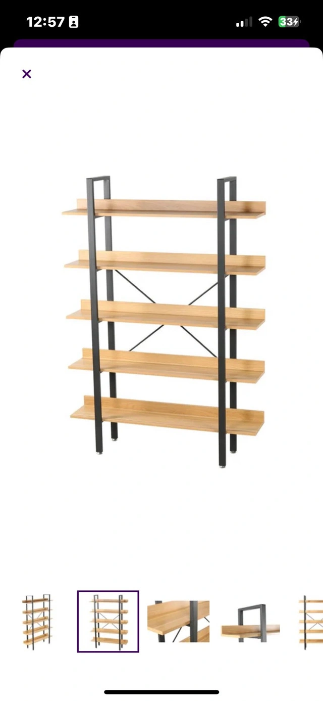 91The price is for one unit. Total 6 pieces available. This used bookshelf features a modern industrial design with a sturdy metal frame and five wooden shelves, perfect for adding storage and style to any room. It’s in good condition, ready to display your favourite books and decor.