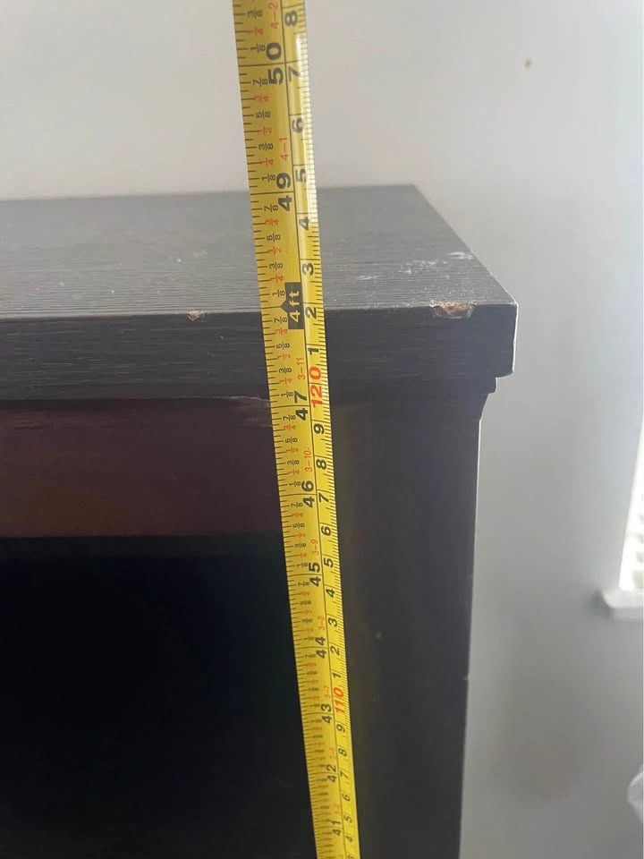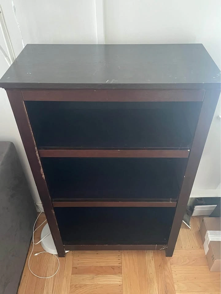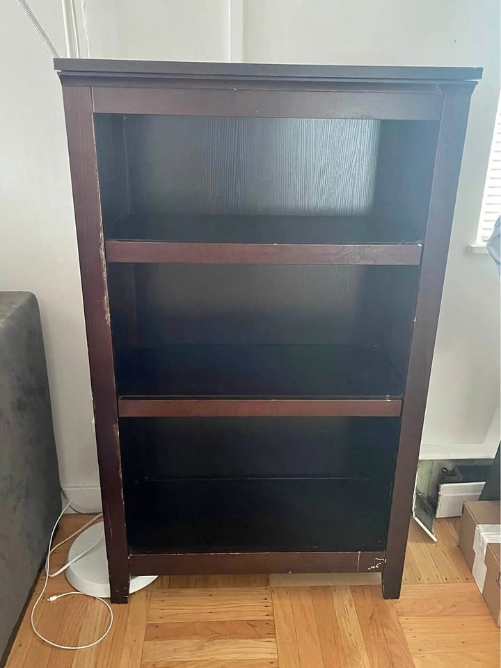 10Bookshelf for sale. Measurements are in the images. It has a bit of wear and tear and some chips, but it works fine. Selling because I'm moving. Pick up at 1st and Vine.