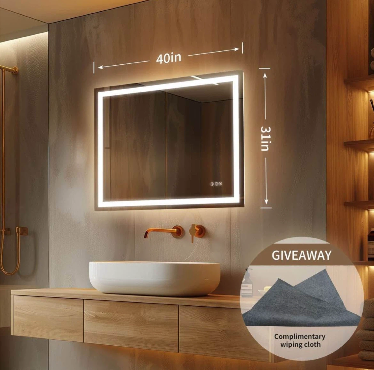 Selling a Booluu LED Lighted Bathroom Mirror! It's in excellent condition and still in its original box. Dimensions: 40 inches x 32 inches