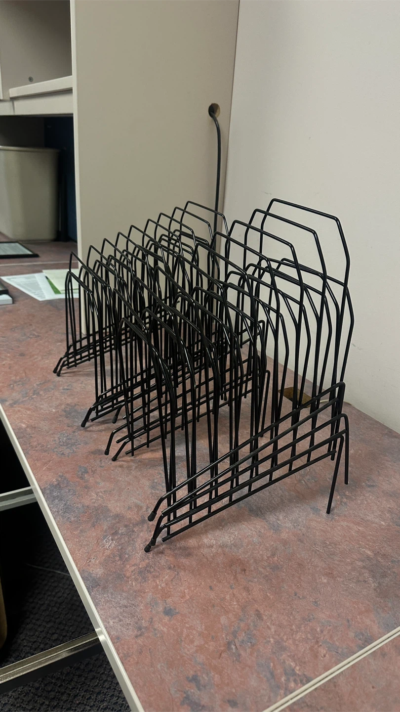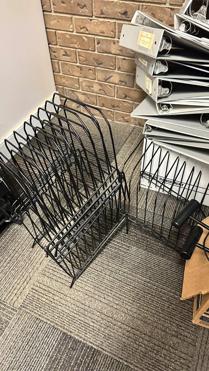 Selling a set of black metal file organizer racks. They are in good condition and perfect for keeping your documents organized at home or in the office!