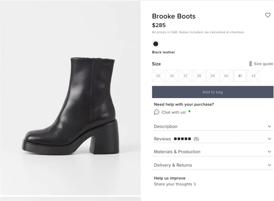 23Size: 37 ( 6,5-7) 📍Pick up: Steeles&Bathurst st. UPPER: Cow Leather, Portugal OUTSOLE: Lt Tr, Vietnam LINING: Textile, (100% Grs Recycled Polyester), China VAMP LINING: Textile, (100% Organic Cotton), India INNER SOLE: Goat Leather, Chrome Free Tanned, Pakistan Shaft height: 190 mm Shaft width: 251 mm Heel height: 87 mm