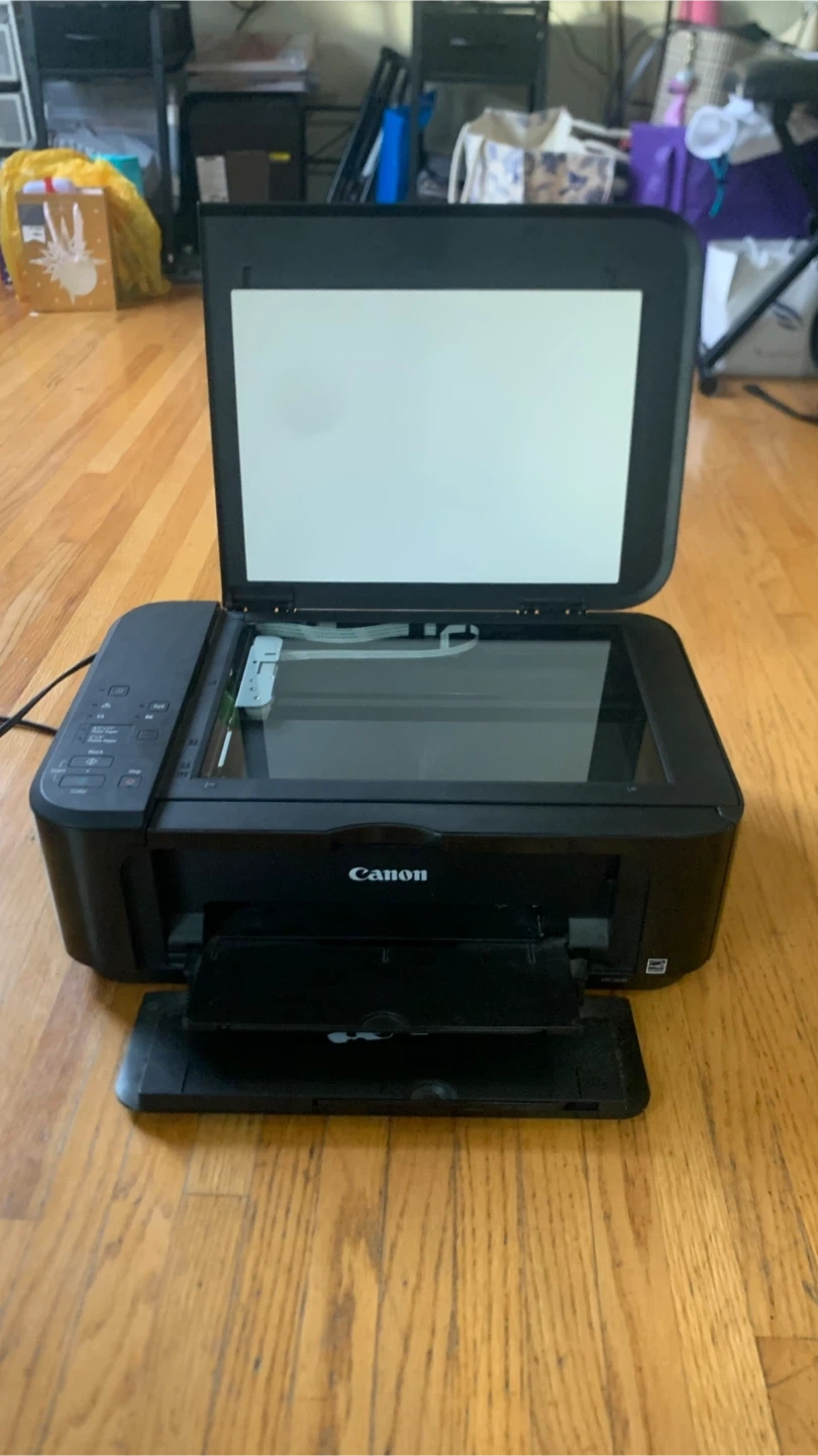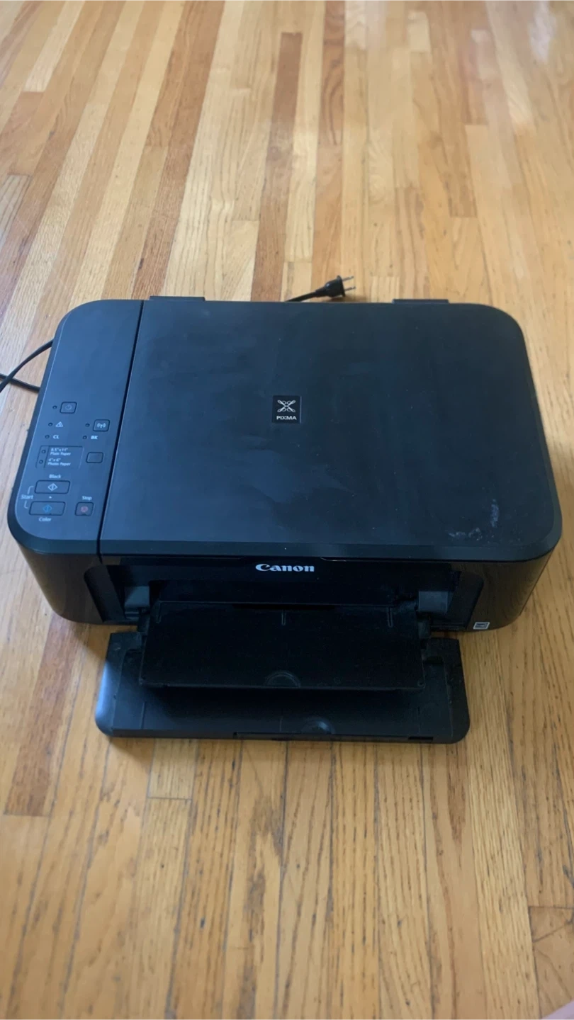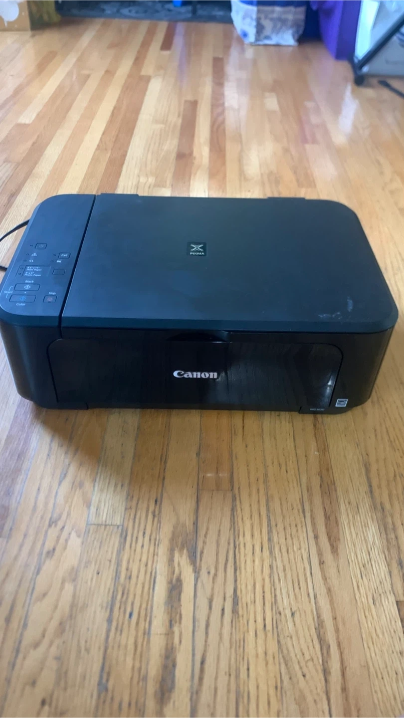 This is a black Canon PIXMA printer. It's an all-in-one model with print, scan, and copy functions. It's suitable for home or small office use.