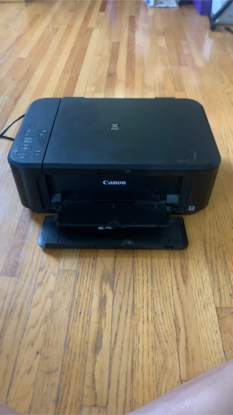 This is a black Canon PIXMA printer. It's an all-in-one model with print, scan, and copy functions. It's suitable for home or small office use.