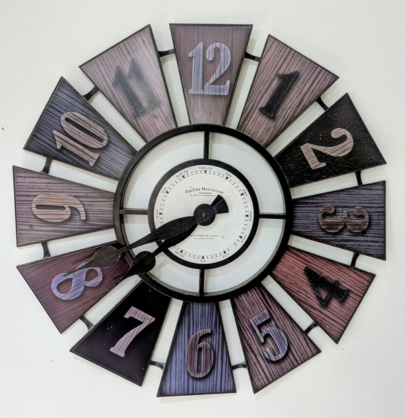 This Firstime Manufactory wall clock features a "Reclaimed Edition" design. It has large, easy-to-read numbers and a rustic aesthetic. A unique timepiece for any room!
