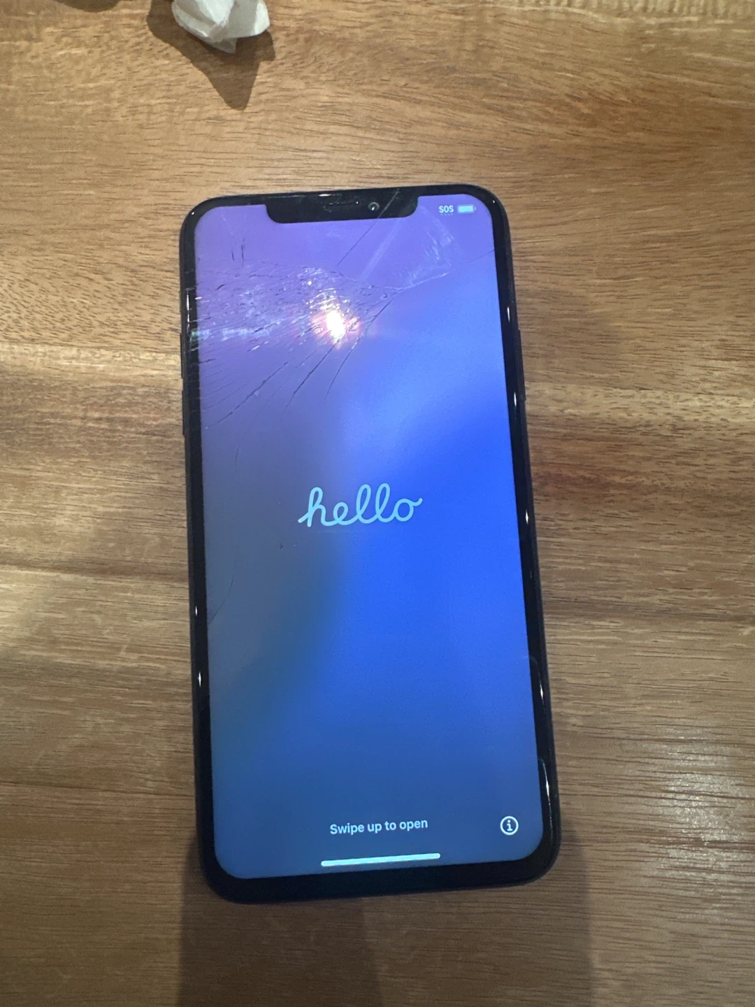 This is an Apple iPhone 11 Pro with a cracked screen. The phone comes with a dark blue case. It's ideal for someone looking to repair it or use it for parts. It still works perfectly fine and will not cut you - I used phone for 3 months after it cracked with no issues.
