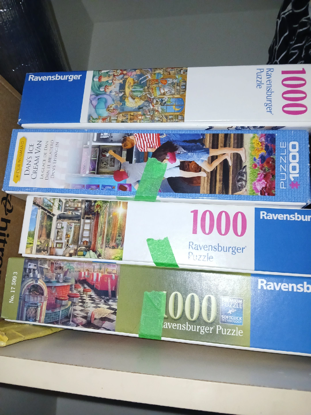 Selling a few Ravensburger 1000-piece puzzles! They're all in good condition and ready for a new home. Great for cozy nights in or a fun family activity. two puzzle is missing pieces, as marked. open to trades too