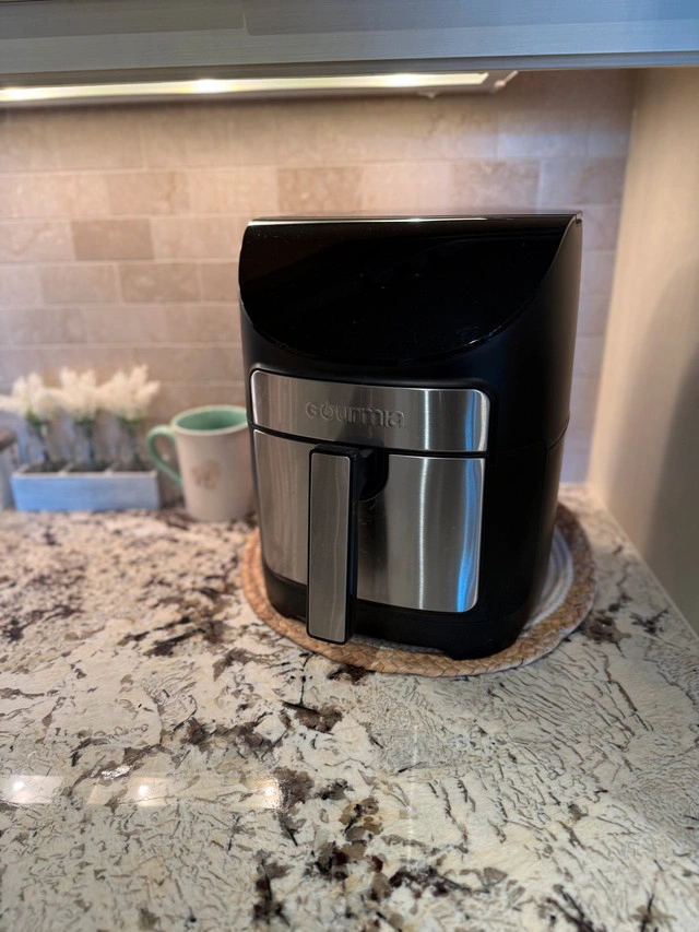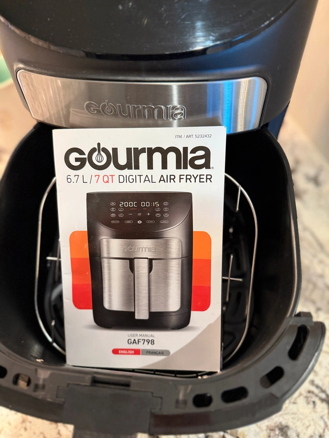 Enjoy crispy and delicious meals with this used Gourmia 6.7 L / 7 QT Digital Air Fryer, model GAF798. It's in good working condition and ready to help you create your favourite recipes with less oil. The digital interface makes it easy to select the perfect settings for everything from fries to chicken. Here are some details: * Brand: Gourmia * Capacity: 6.7 L / 7 QT * Model: GAF798 * Digital controls Excellent working condition. Lightly used. Pick up Quarry Park SE or Mahogany SE. Cash only.
