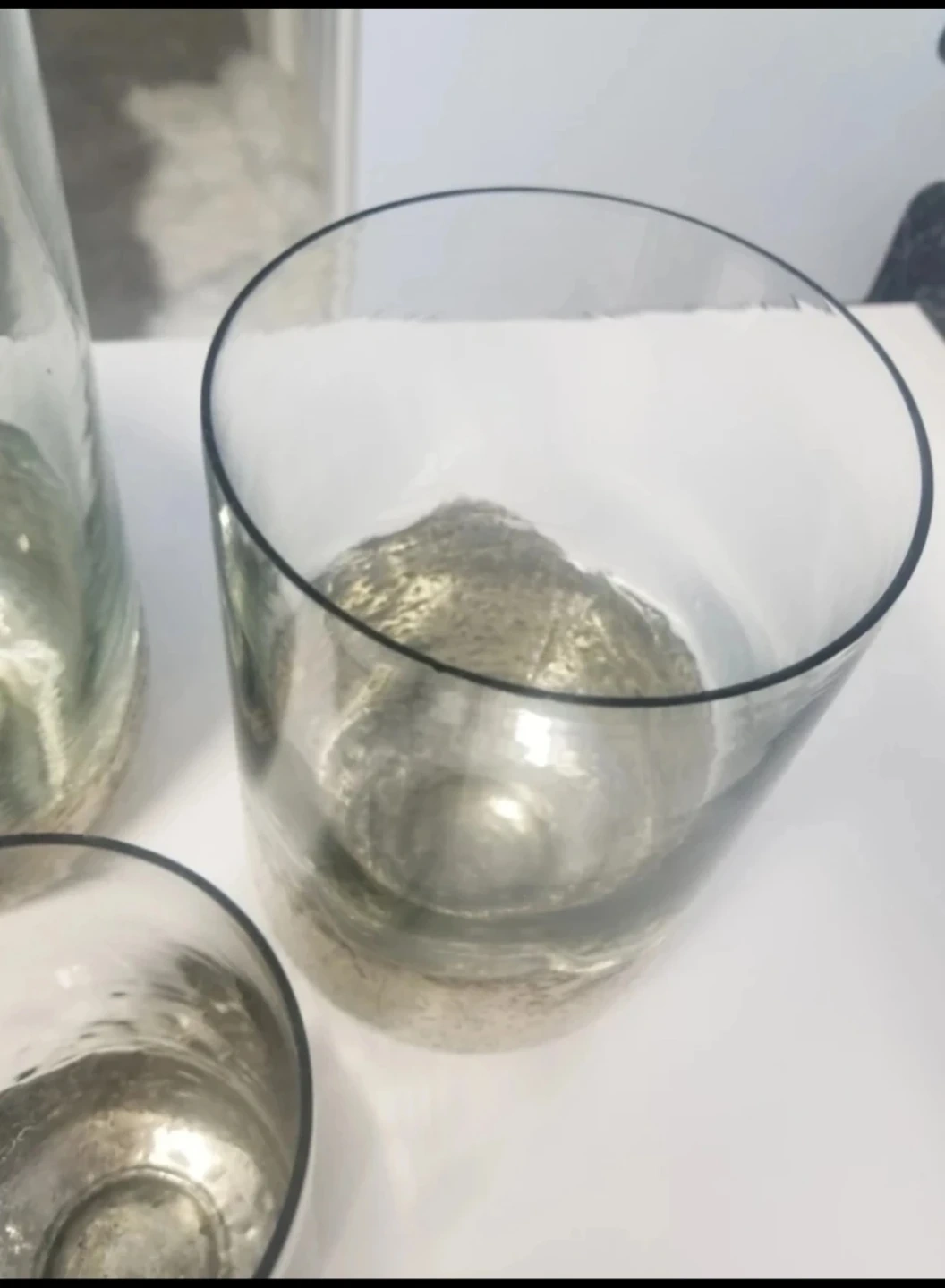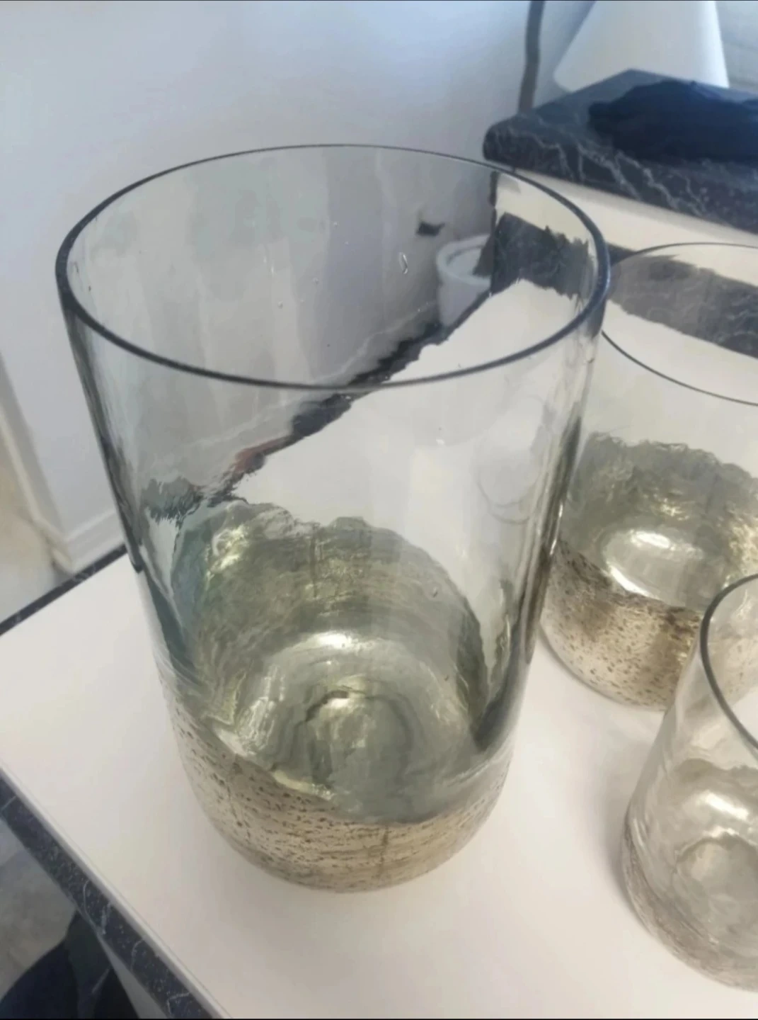 artisan made / home decor / French country / glass vase / hurricane vases / farmhouse style / shelf decor / coffee table decor / chic decor / large vase / tall vase / candle holder / large vase