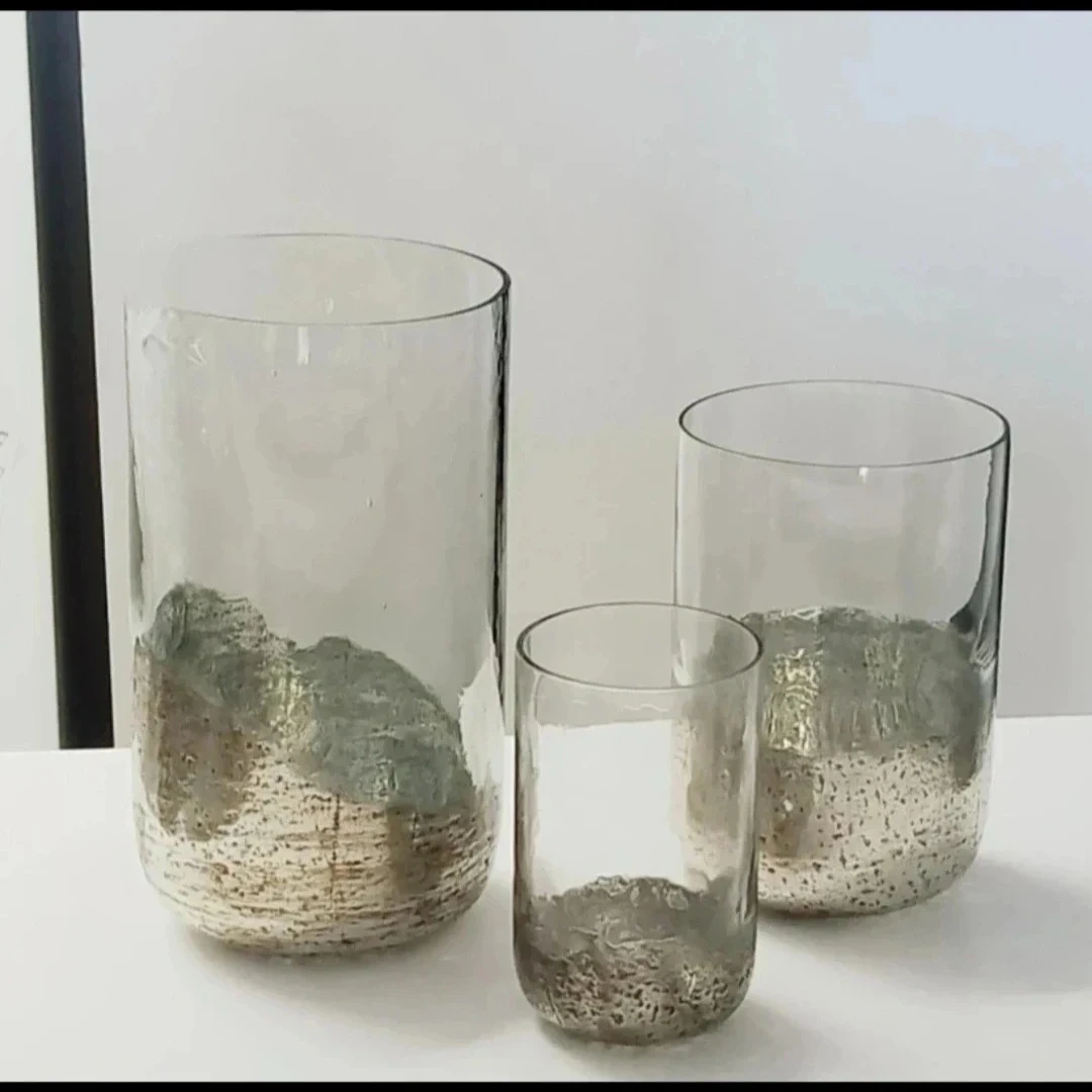 artisan made / home decor / French country / glass vase / hurricane vases / farmhouse style / shelf decor / coffee table decor / chic decor / large vase / tall vase / candle holder / large vase