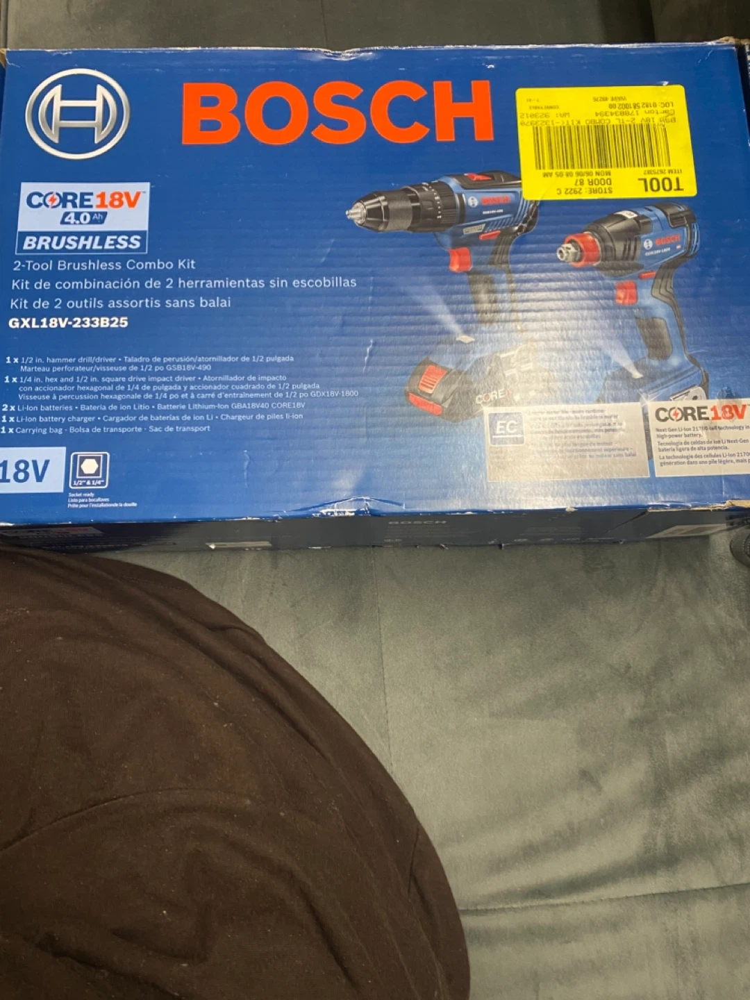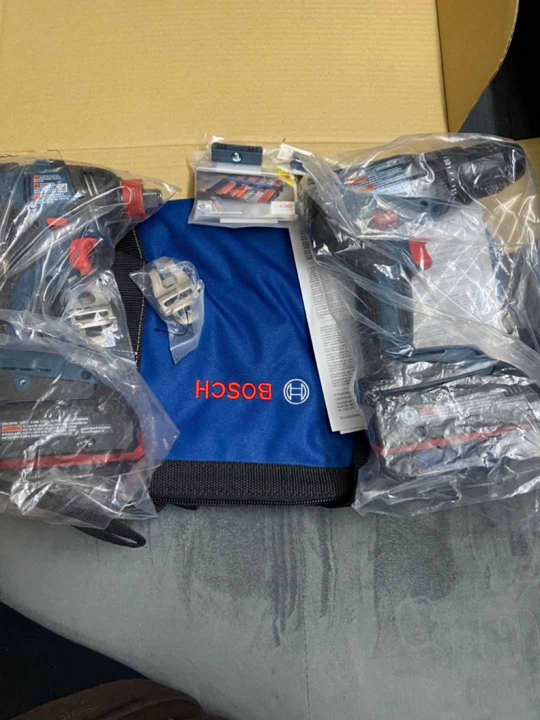 71Selling a Bosch CORE18V Brushless 2-Tool Combo Kit (GXL18V-233B25). This kit includes a hammer drill/driver and an impact driver, perfect for various projects around the house or on the job site. Comes with two Li-ion batteries and a carrying bag for easy transport and storage i am sala all branded products on 50 to 60% for original price and available 1,2,3,4,5,6,7, piece brand new.