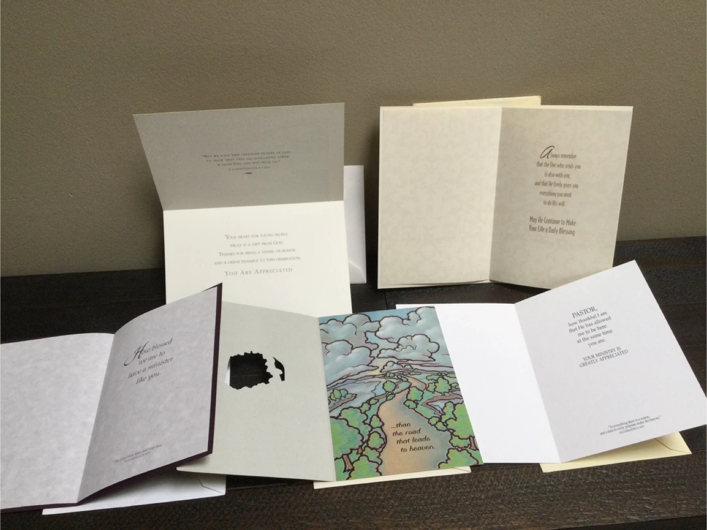 Free lot of religion inspirational greeting cards with uplifting messages. One card thanks the youth, another is for a youth pastor, and two offer general blessings and encouragement. They're great for sharing faith and support.