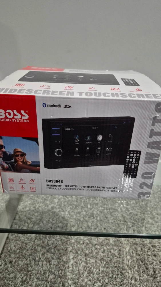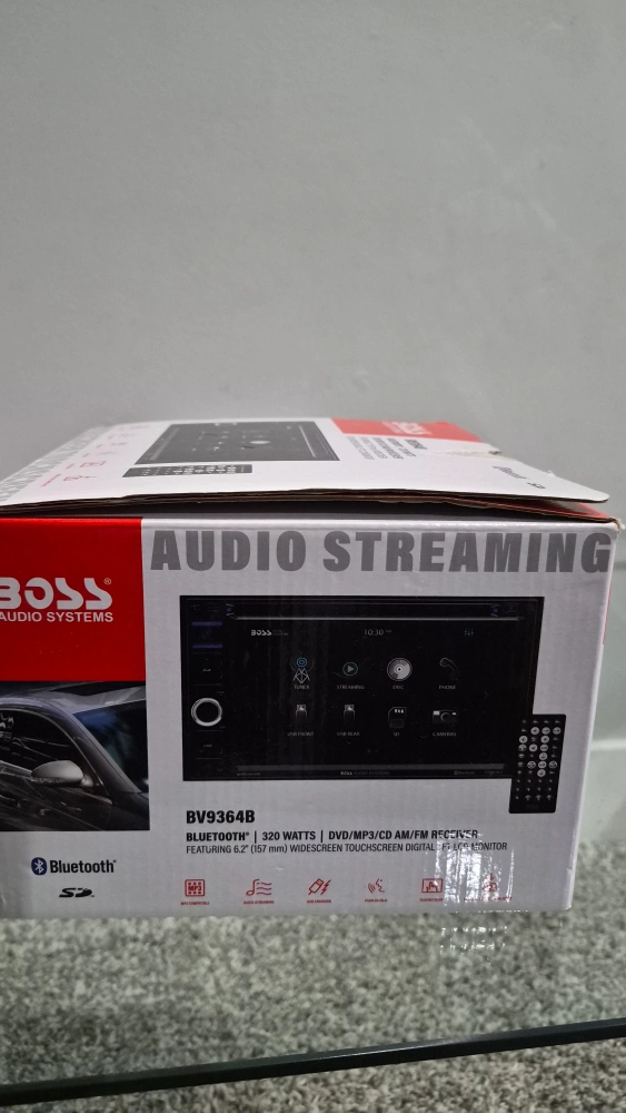 Selling a brand new BOSS Audio Systems BV9364B car audio receiver! This unit features Bluetooth connectivity, 320 Watts, and a DVD/MP3/CD AM/FM receiver. It also has a 6.2" (157 mm) widescreen touchscreen digital TFT LCD monitor. The box is included!