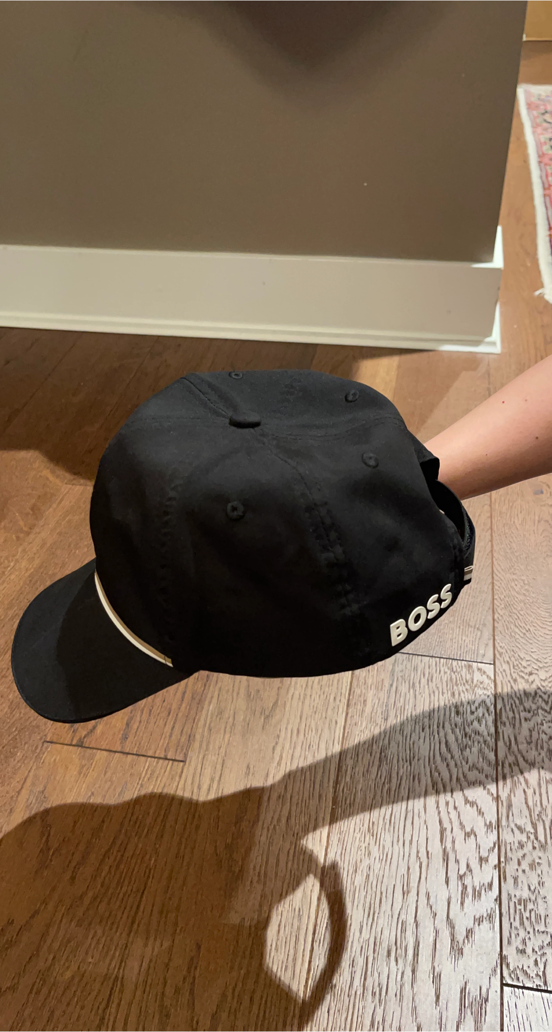 Selling a black baseball cap from BOSS. The logo is visible on the side. It's in great condition and ready for a new home!