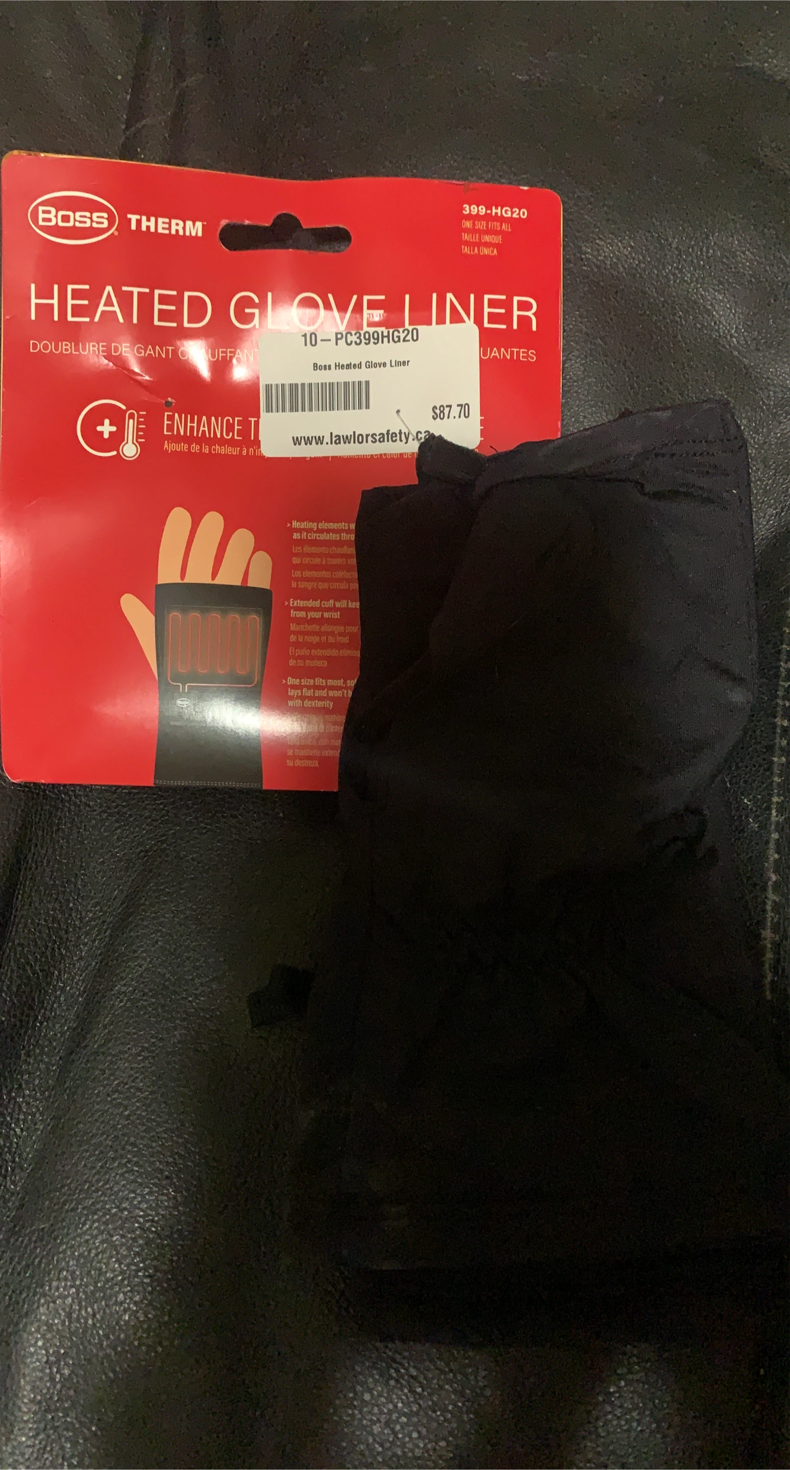 105Keep your hands toasty with this BOSS Therm heated glove liner! It's a one-size-fits-all design, perfect for adding extra warmth under your regular gloves. The extended cuff helps keep the cold and snow out of your wrist. Originally bought for $87.70