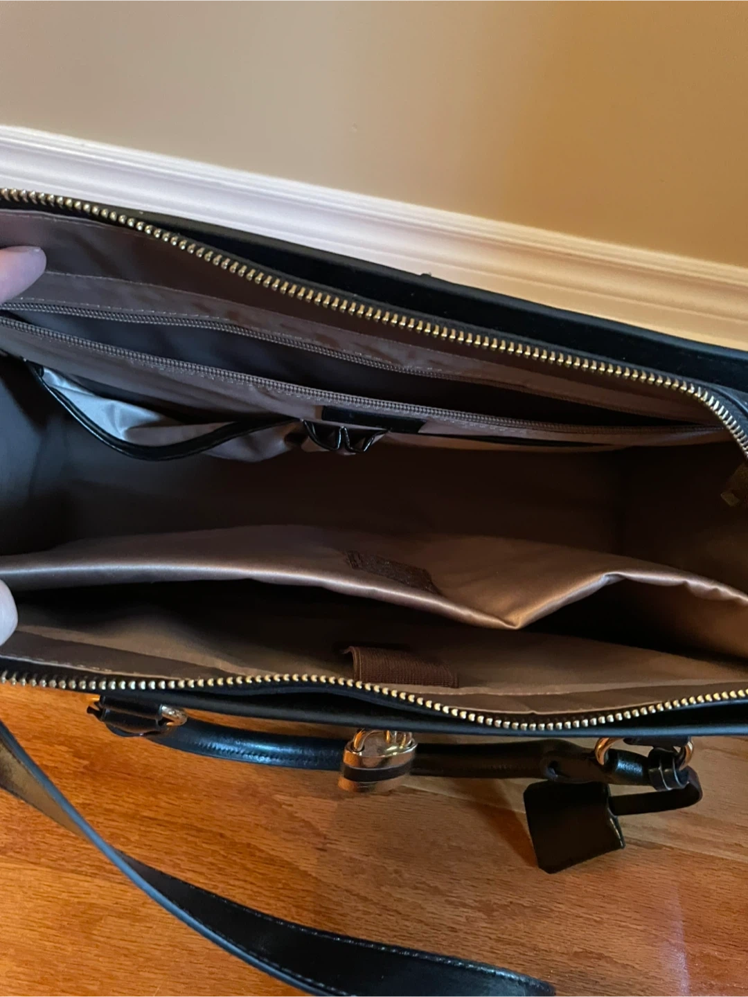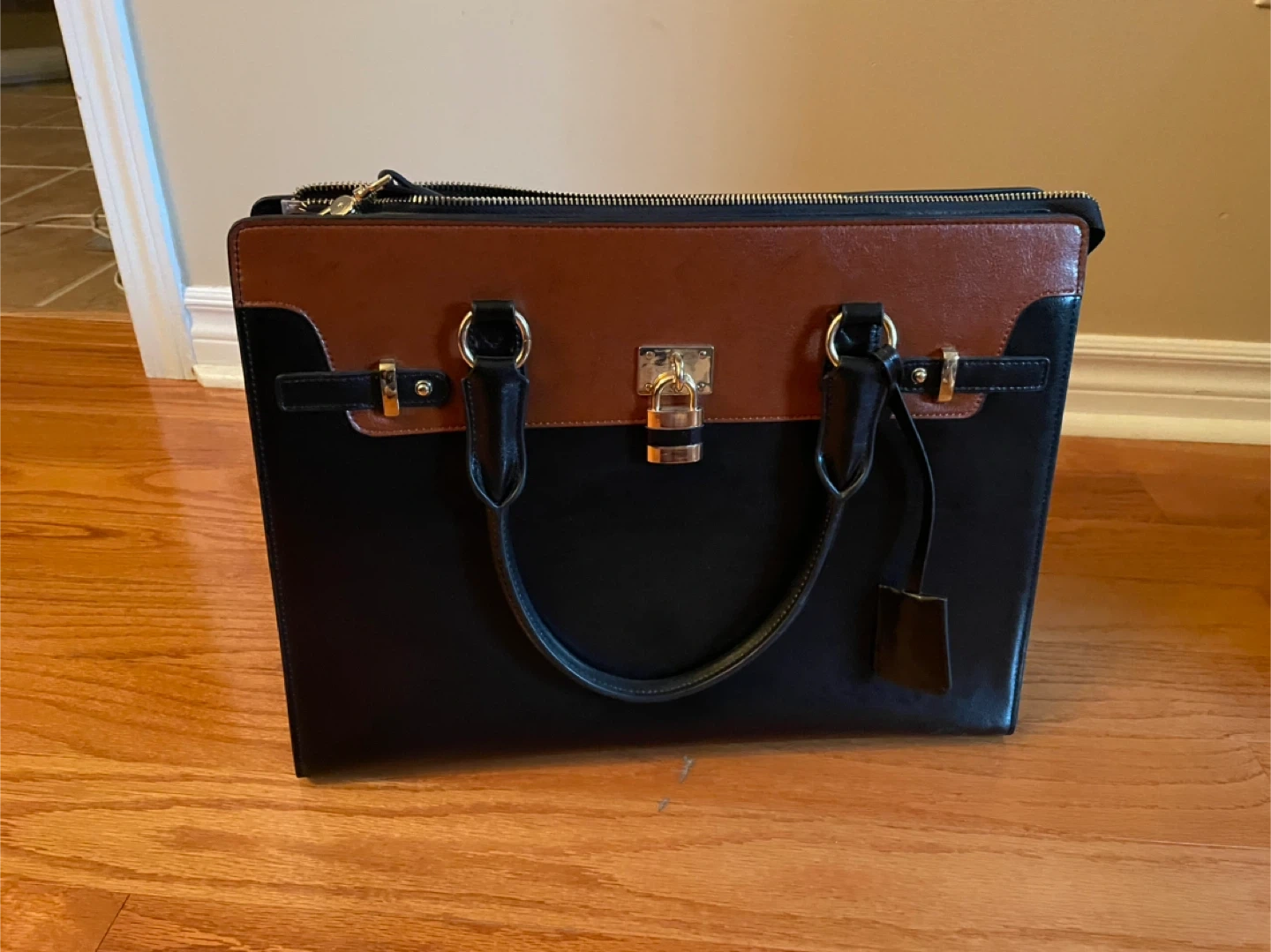 BOSTANTEN Womens Briefcase Leather Laptop Bag for Women Stylish Messenger Shoulder Handbag 15.6 Inch Computer Tote Work Bag Selling a Bostanten leather bag. It's in great condition and perfect for work or travel. The bag features a black and brown colour block design with gold-tone hardware. Never used. It was a gift, never given. Retail was over $200. Perfectly new.