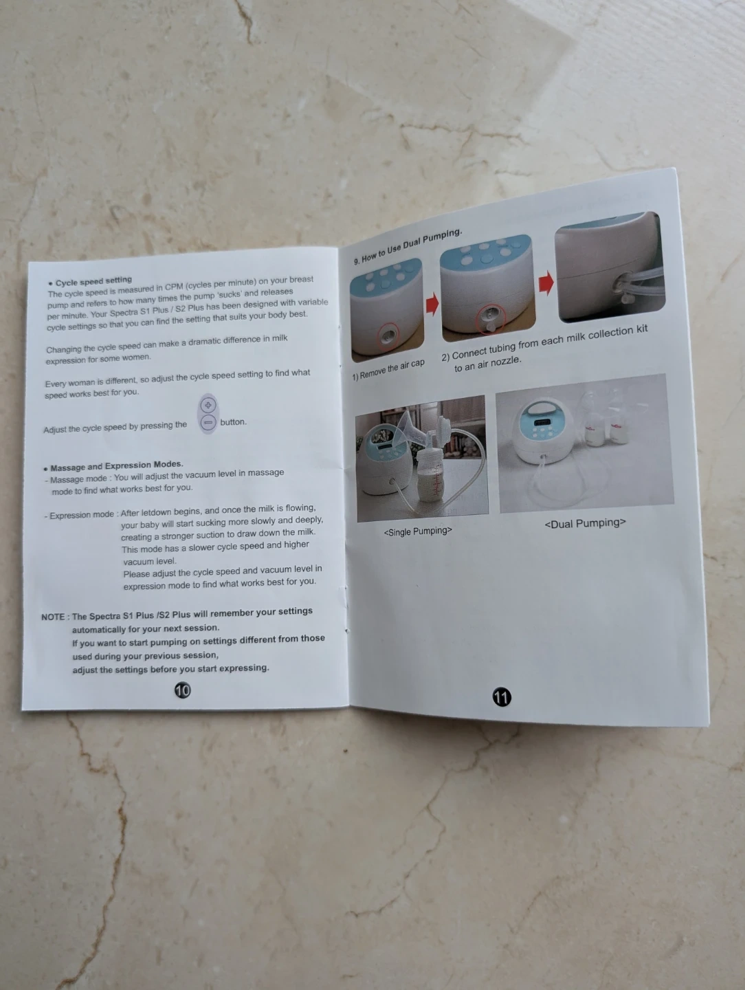 Gently used Spectra S1 Plus electric breast pump with dual pumping capabilities. It comes with all the visible accessories and power adapter. The pump offers adjustable cycle speed and massage/expression modes for personalized comfort.